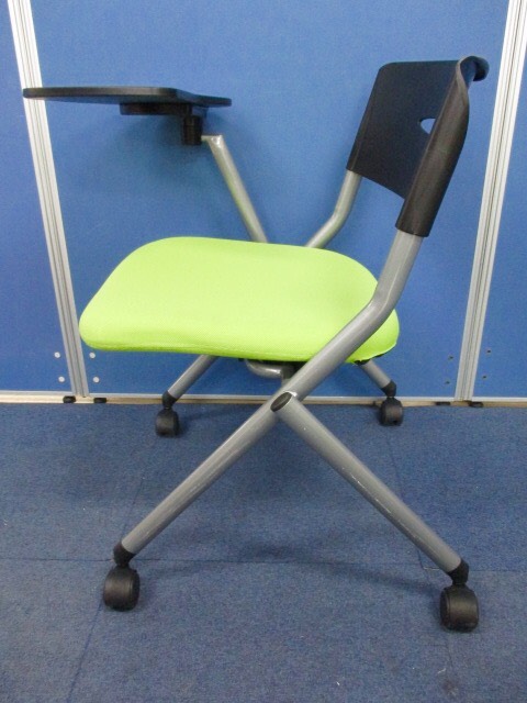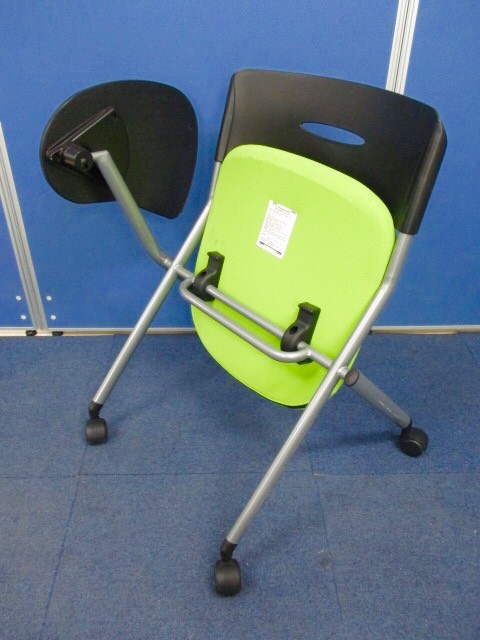 [14脚入荷!!]サンワサプライ ネスティングチェア ライトグリーン■会議や研修時に内容などのメモを取るのに便利なメモ台付き!! [ネスタブル]- 足立・葛飾店
