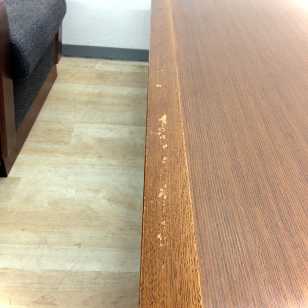 - あり黄ばみ・変色が広い範囲にうっすらある、または濃い黄ばみ・変色が一部ある。(例:三人用ソファ、二人用ソファ、一人用ソファの場合、背もたれ、肘かけ、座面等、 センターテーブルの場合、天板、脚にある。)