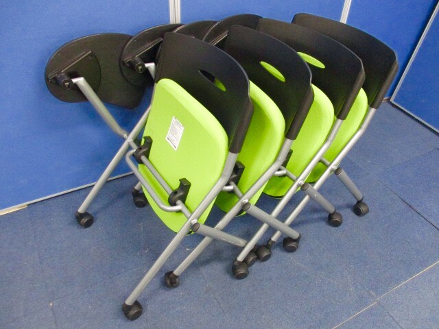 【4脚セットのため特別価格!!】サンワサプライ製 ネスティングチェア ■会議や研修の際にメモを取るのに便利なテーブル付き!!- 足立・葛飾店