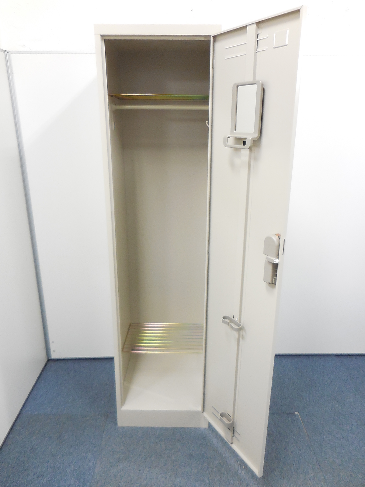 【鍵二本付】【ワイトタイプ一人用ロッカー!】上部に用途不明の部品が付属されておりますが、使用上に問題御座いません。- 横浜本店