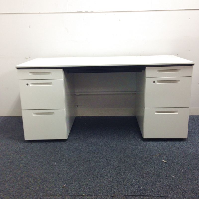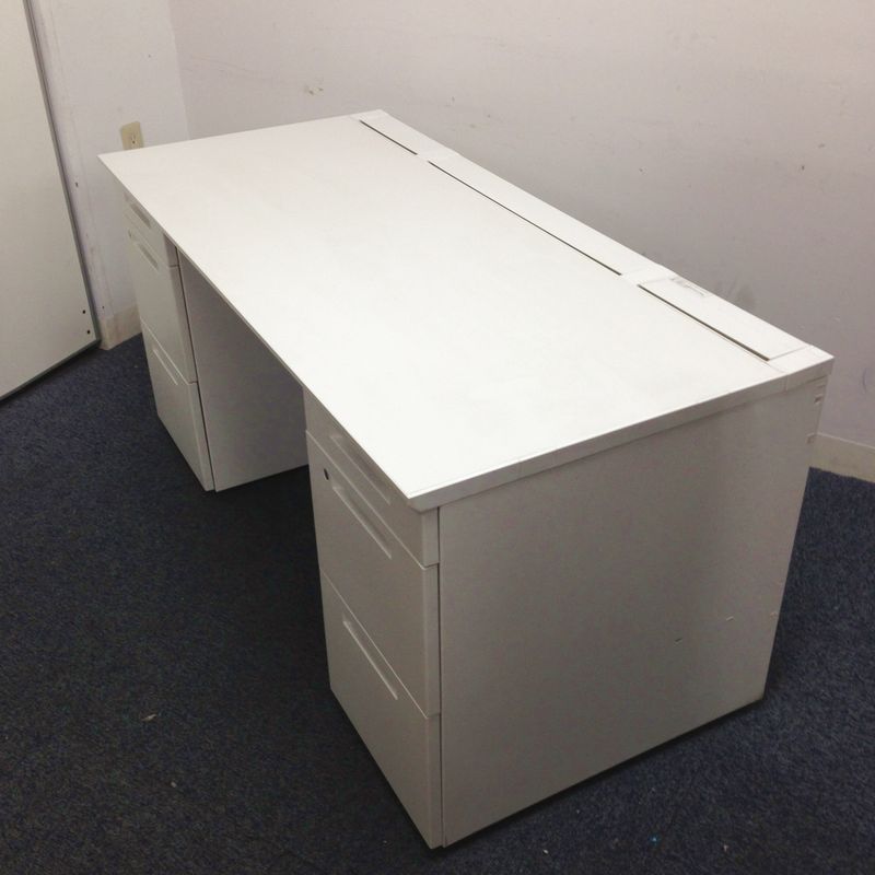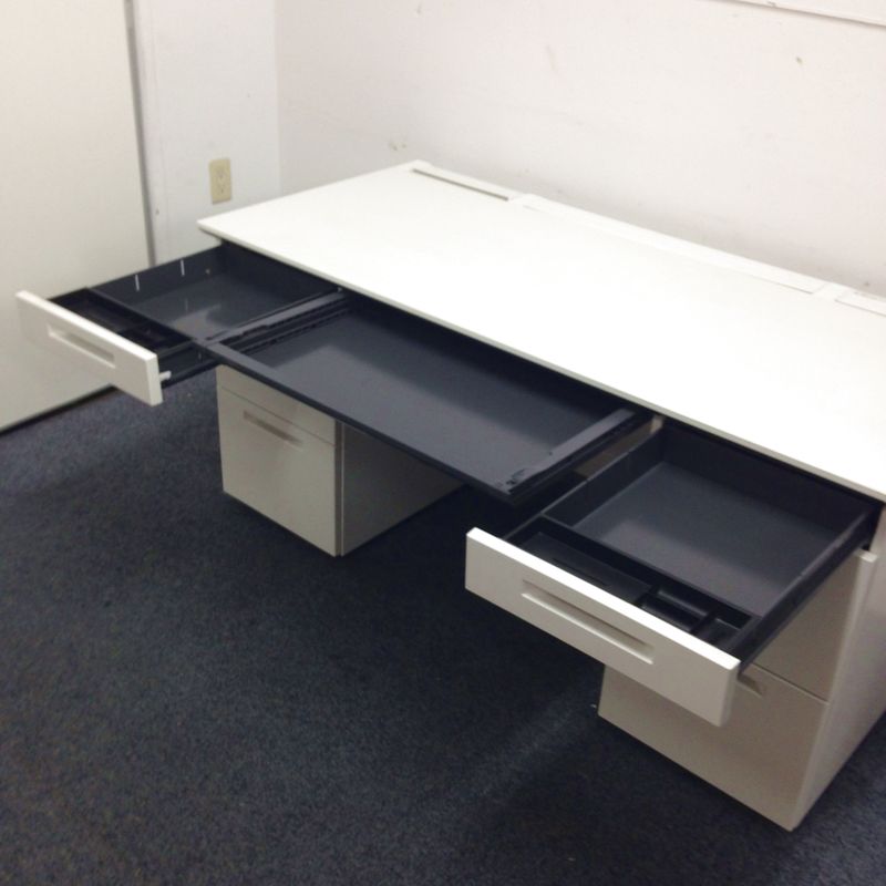 ホワイト色 両袖机 役職者・マネージャーに最適な幅1500mmサイズ! 両サイド引き出し鍵付き!- 名古屋千種店