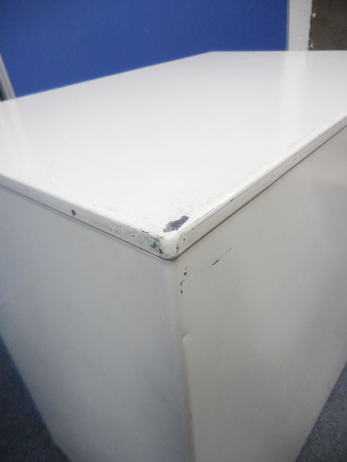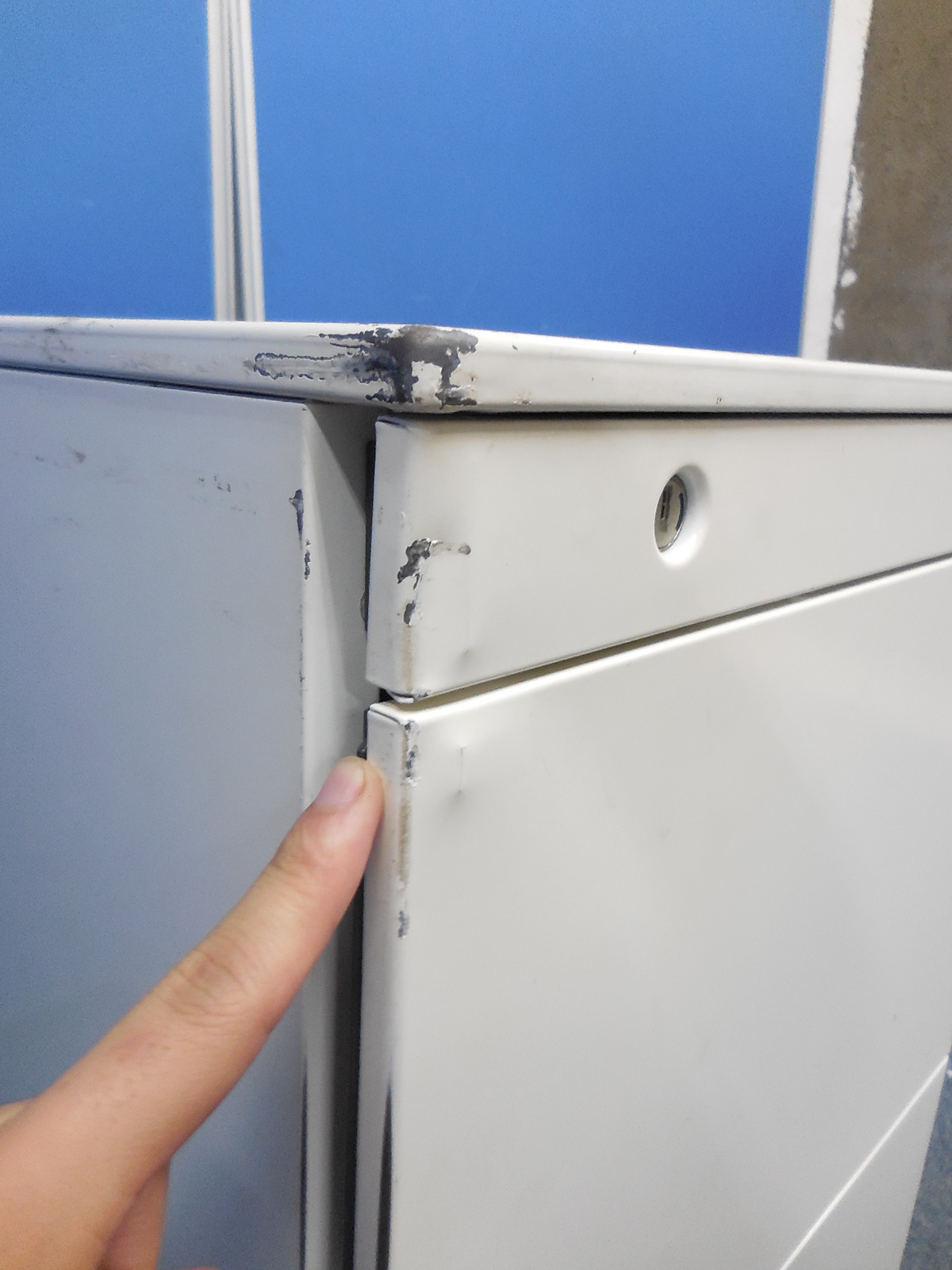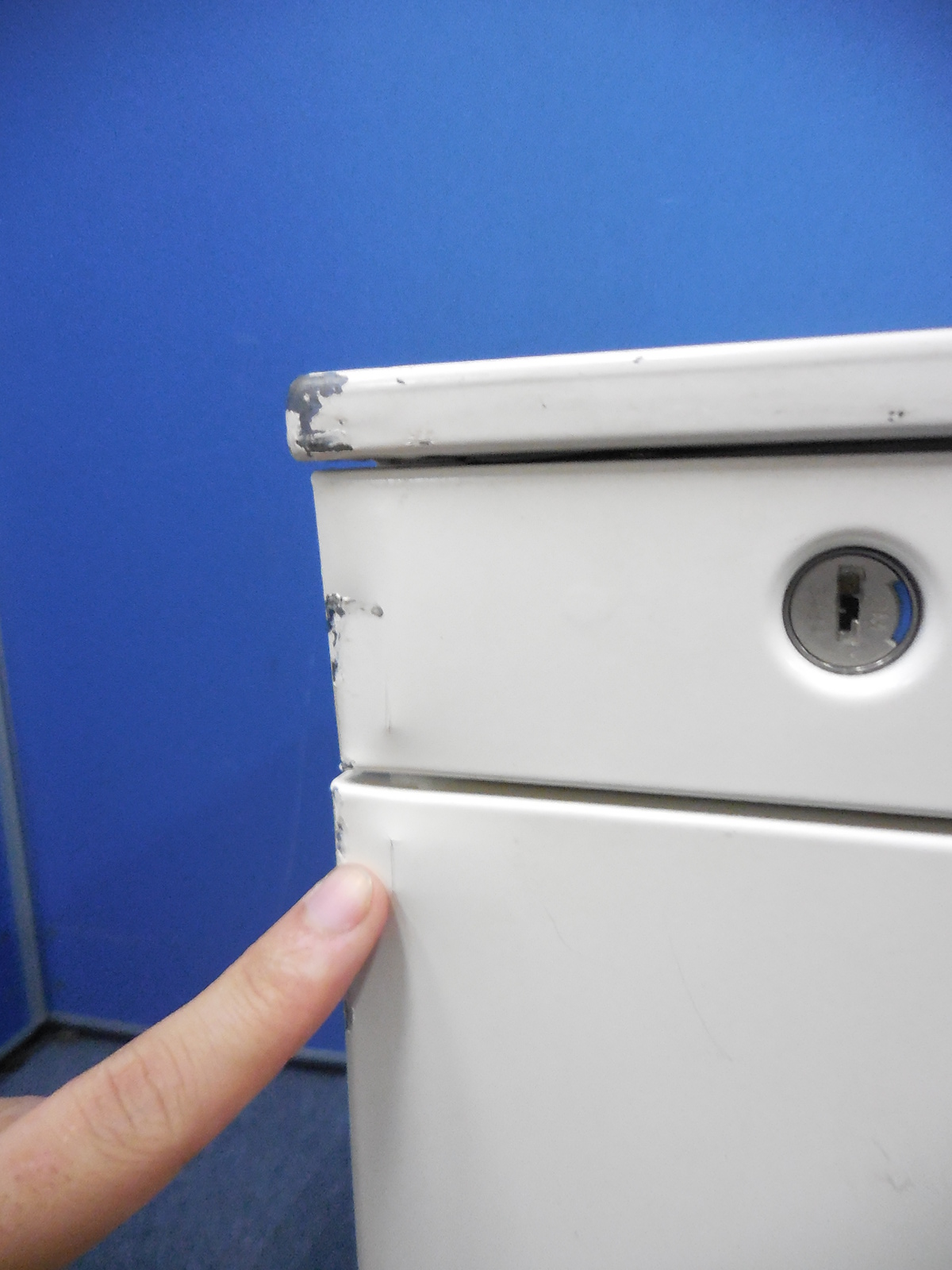 内容としては、上段引出し部分の左側に壁などに接触したと思われる凹みと