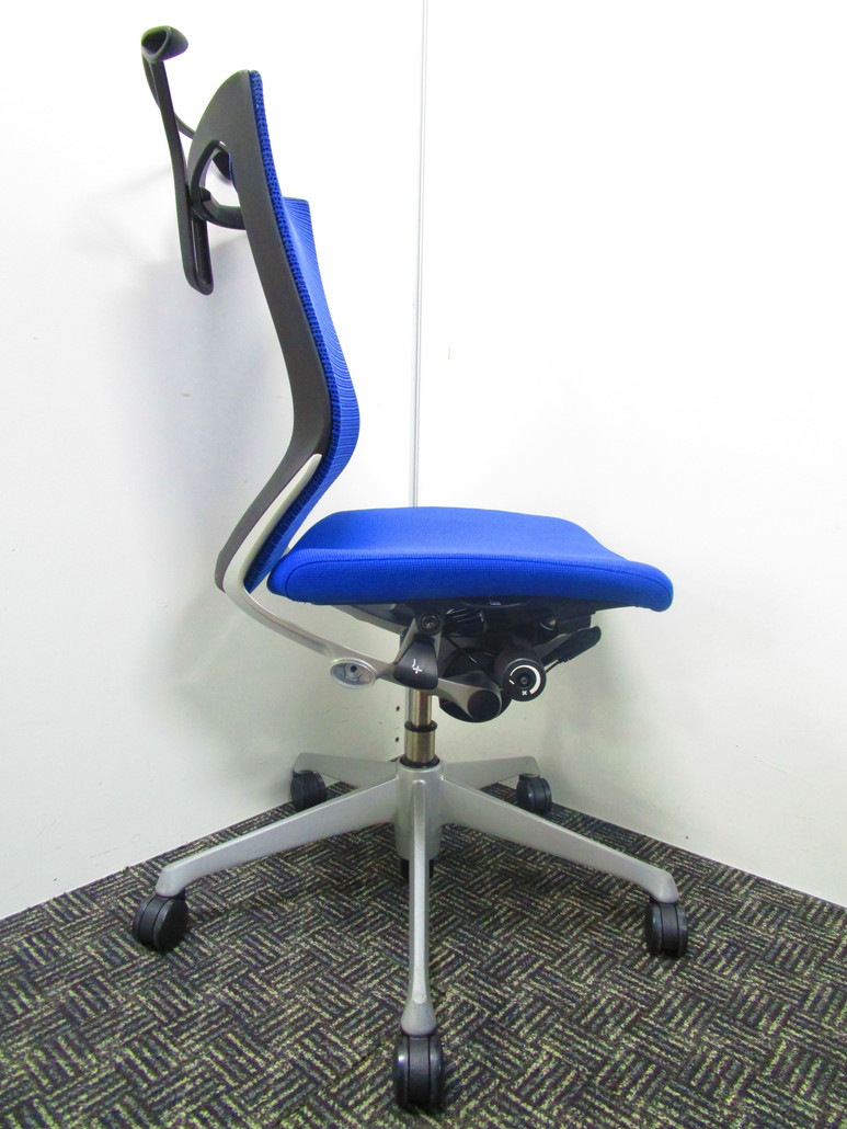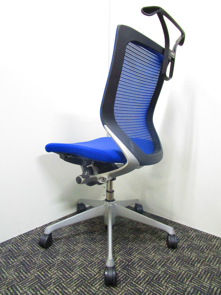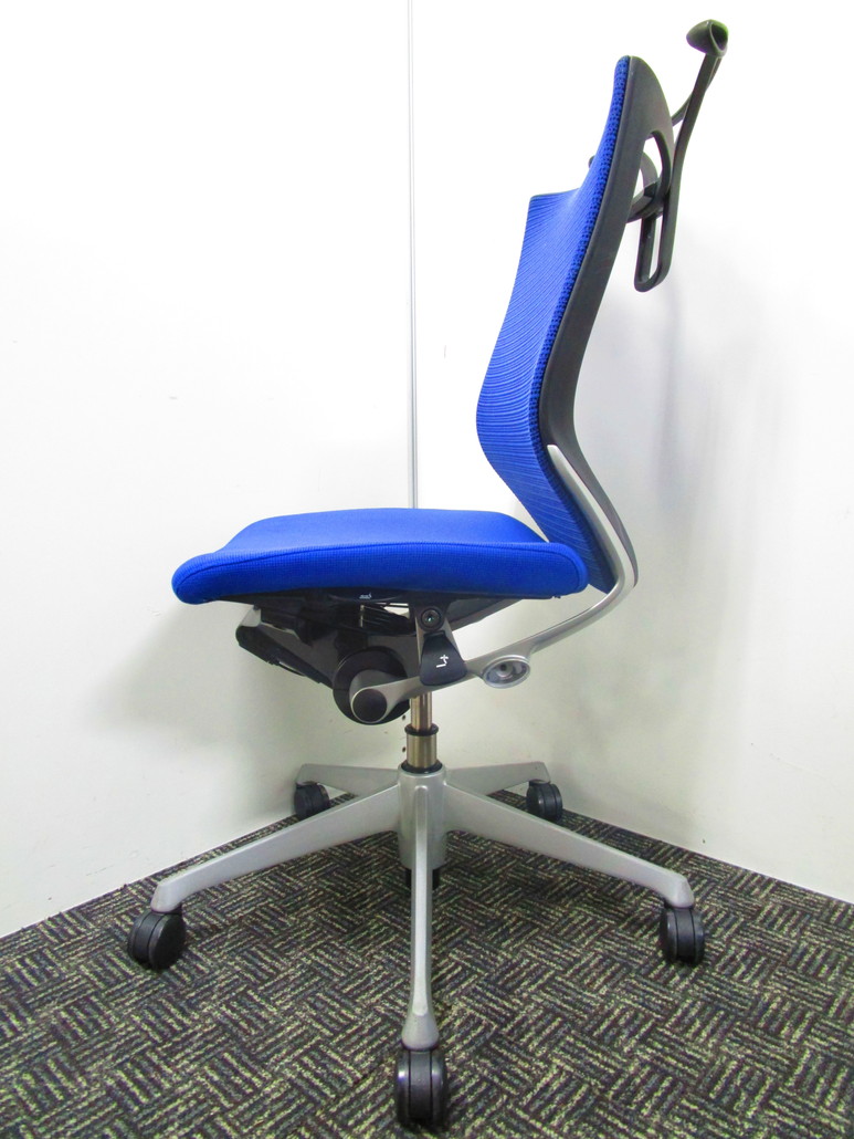 【オカムラ製の王道高級チェア!通気性ばっちりで長時間の着座も快適に過ごせます!】 ■オカムラ(okamura) バロン(Baron) ローバック 肘無し ■ブルー ■背面メッシュ 座面クッション【入替セールにつき40%OFF!】