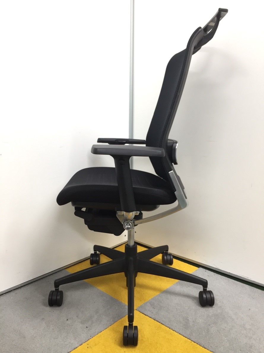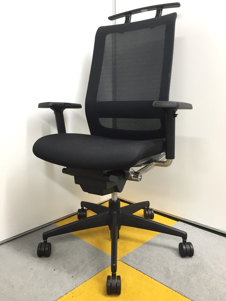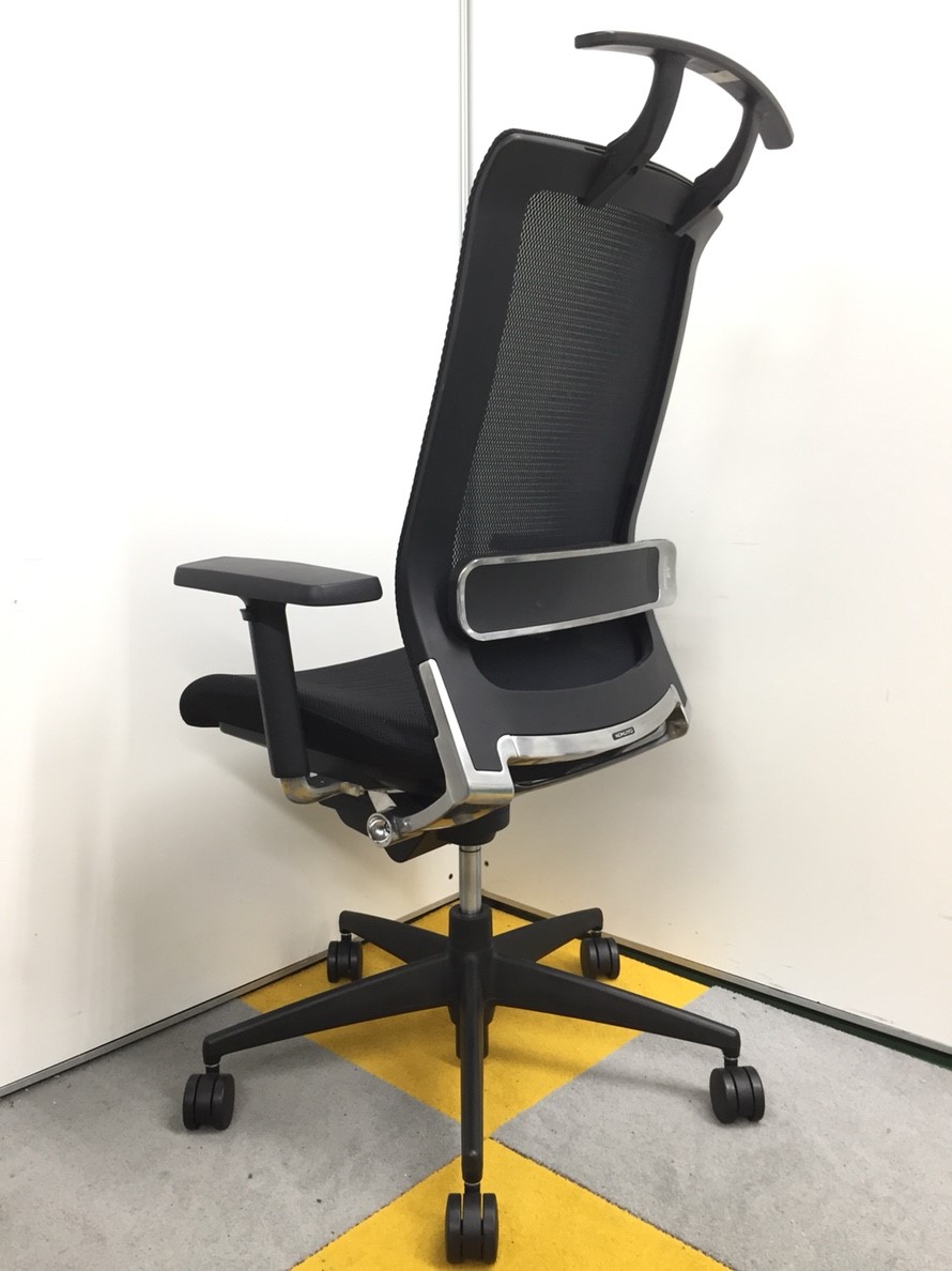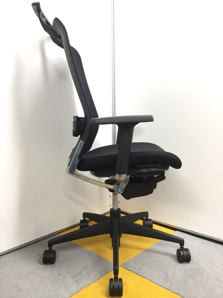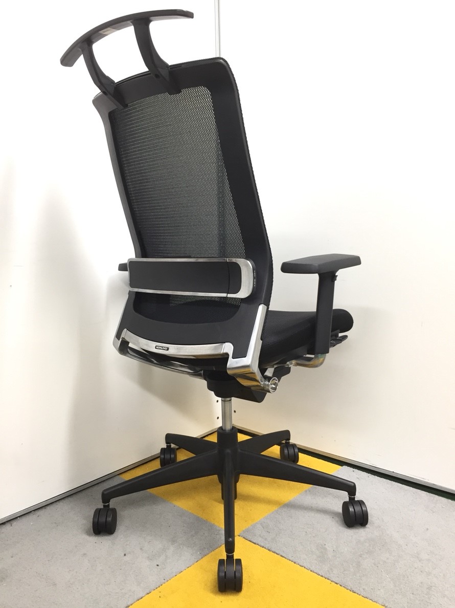 【スマートなデザインの上質チェア!】■コクヨ製 エアフォート 肘付ハイバックチェア ■ブラック ランバーサポート付き 可動肘