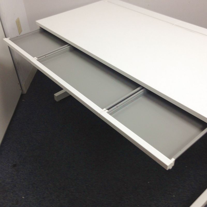 【T8】商品入替のため、残り1台限り】ウチダ製 スカエナ ホワイト 注意※薄型引出し無し Kタイプ/奥一直線配線タイプ W1400サイズ W1400平机!!