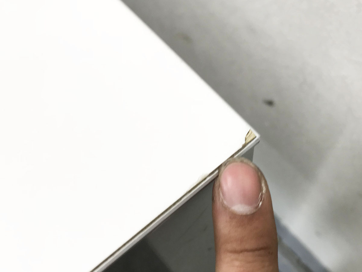 - あり黄ばみ・変色が広い範囲にうっすらある、または濃い黄ばみ・変色が一部ある。(例、天板、幕板、棚板、サイド部分、脚部等にある。)