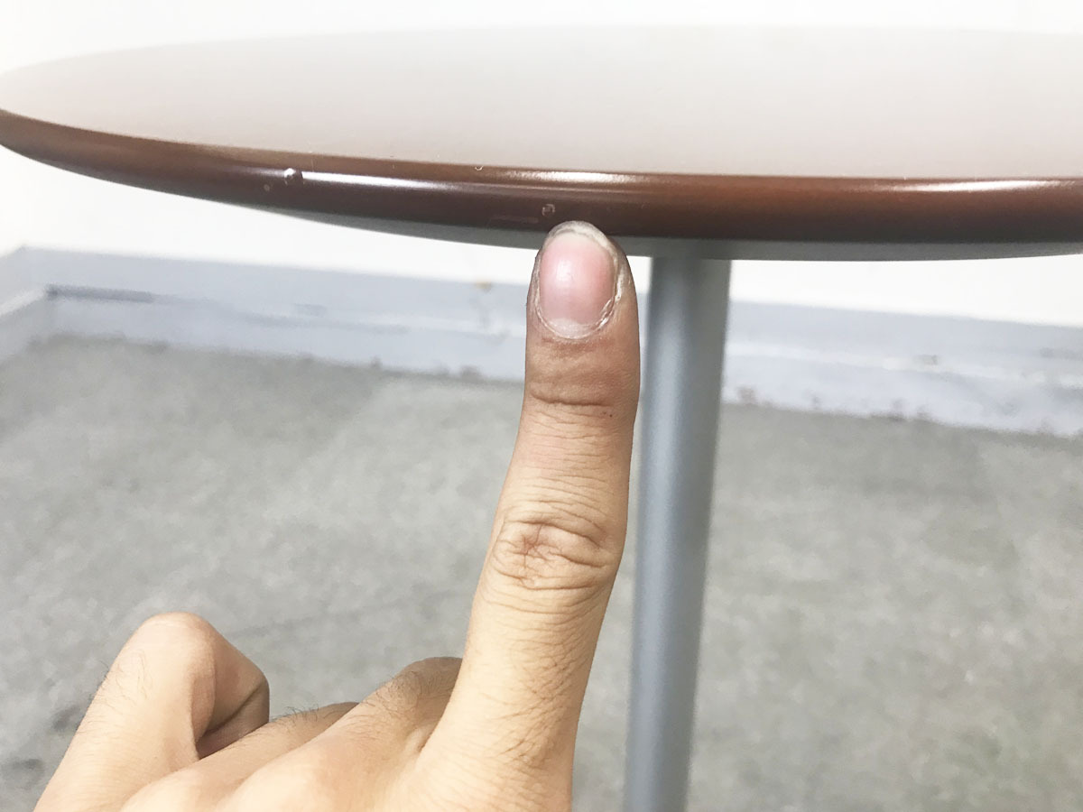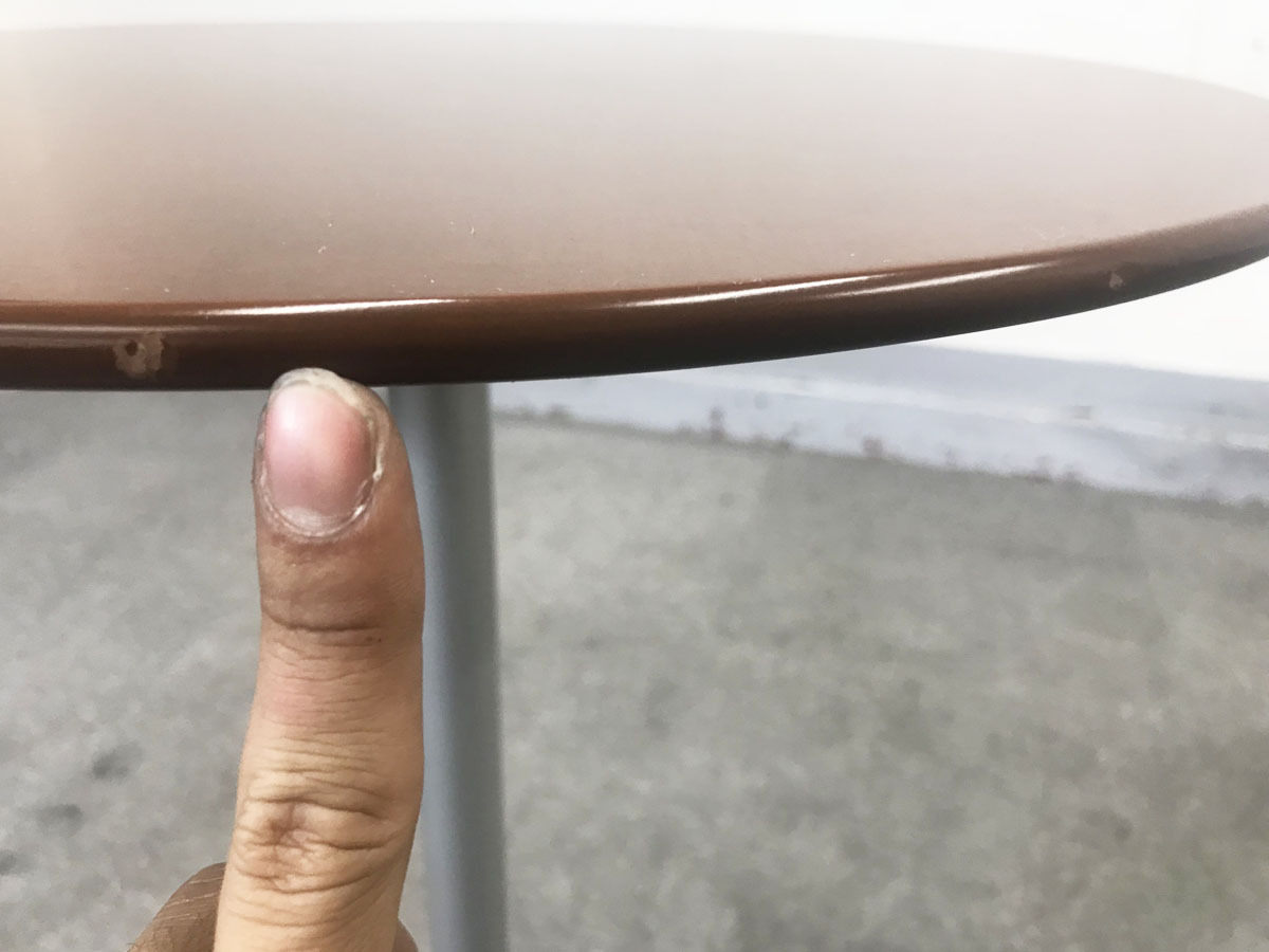 - 壊れている天板歪み、アジャスター無し、キャスター使用不可のようにそのテーブルの本来の効用を果たすための機能に不具合がある。