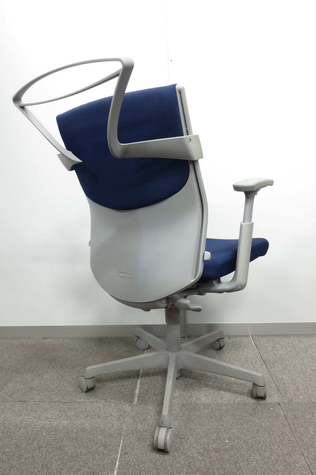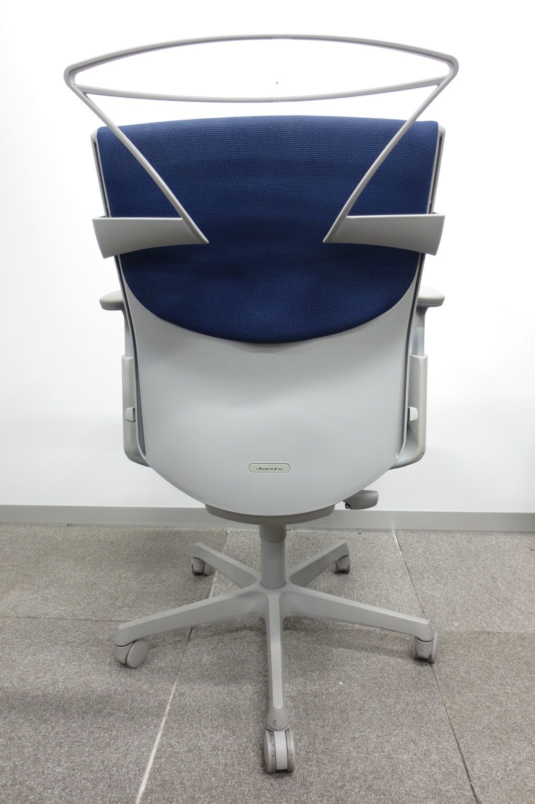 【濃いめのブルーカラーの人気チェア!】オカムラ エスクード 肘付 ハイバック ネイビーブルー グレーシェル 人気 中古 福岡 九州最大級《オフィスバスターズ福岡博多店は、福岡を拠点として、日本全国へ中古オフィス用品・オフィス家具を提供しております》