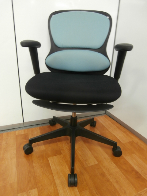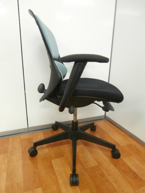 【ユニバーサルデザイン思考に基づいた使いやすい機能と操作性】■イトーキ製 ■ループ ■肘付 ■ライトブルー ■ミドルバック ■可動肘 ■事務椅子 ■OAチェア ■水色- 仙台店