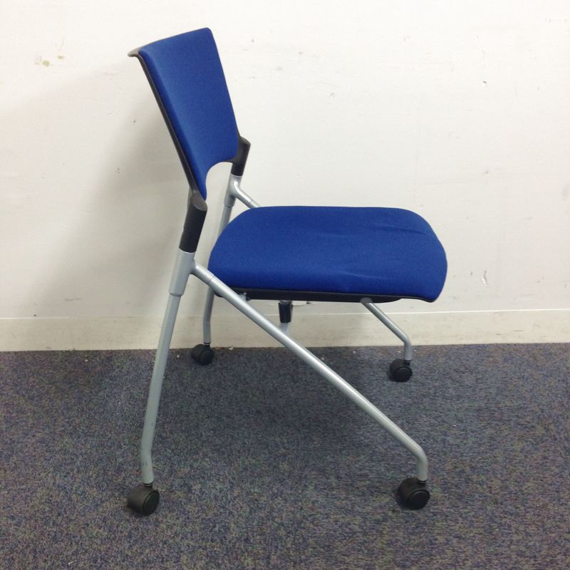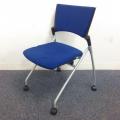 【定価6万円】【ソフトベンディングシェルが背を優しく受け止める!】■イトーキ(ITOKI) マノスチェア(MANOSS) 肘無し スタッキングチェア ミーティングチェア ■背パッド付 ■キャスター脚 ■ブルー