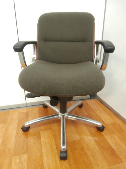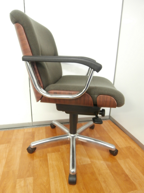【エグゼクティブチェアのダークブラウンカラーの背カラーウッド】■内田洋行製 ■EXシリーズ ■高級チェア ■高機能 ■エグゼクティブ ■グレー ■人気 ■事務椅子 ■OAチェア- 仙台店