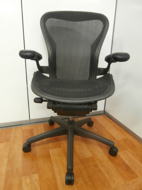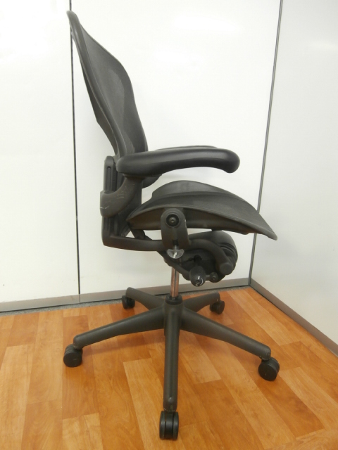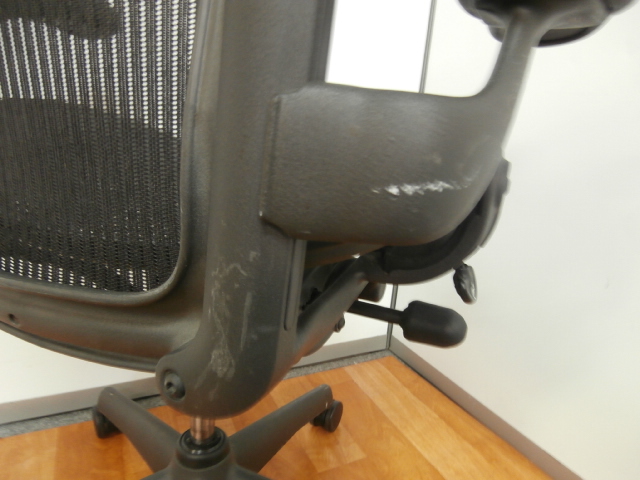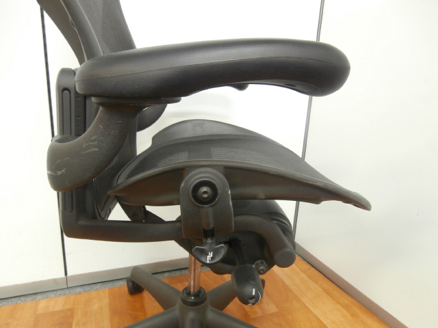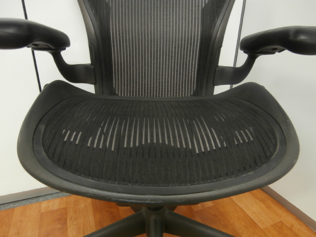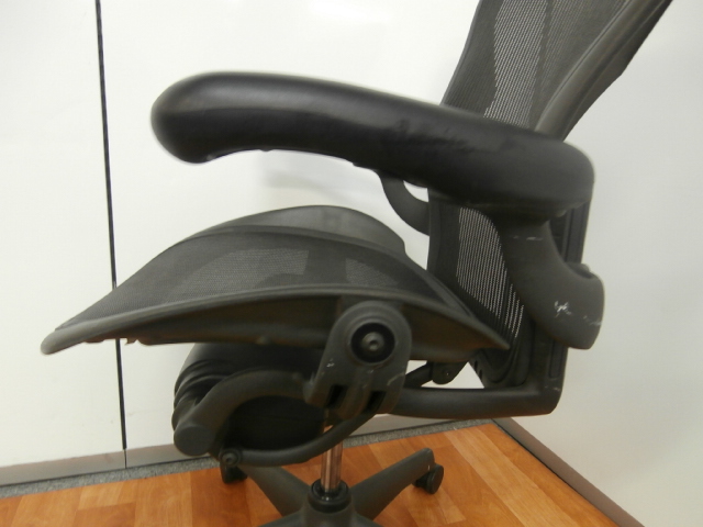 【座 上下昇降 ガス圧不良につき特価!】【オフィスチェアの最高峰!圧倒的人気、知名度を誇るオフィスチェア!肘付ハイバックチェア入荷!】 ■ハーマンミラー(HermanMiller) アーロンチェア 肘付ハイバック ■固定肘 ■背面・座メッシュ ■ブラック ■スタンダード仕様 ■Bタイプ 【上下昇降不可商品につき、中古保証対象外商品となります。】