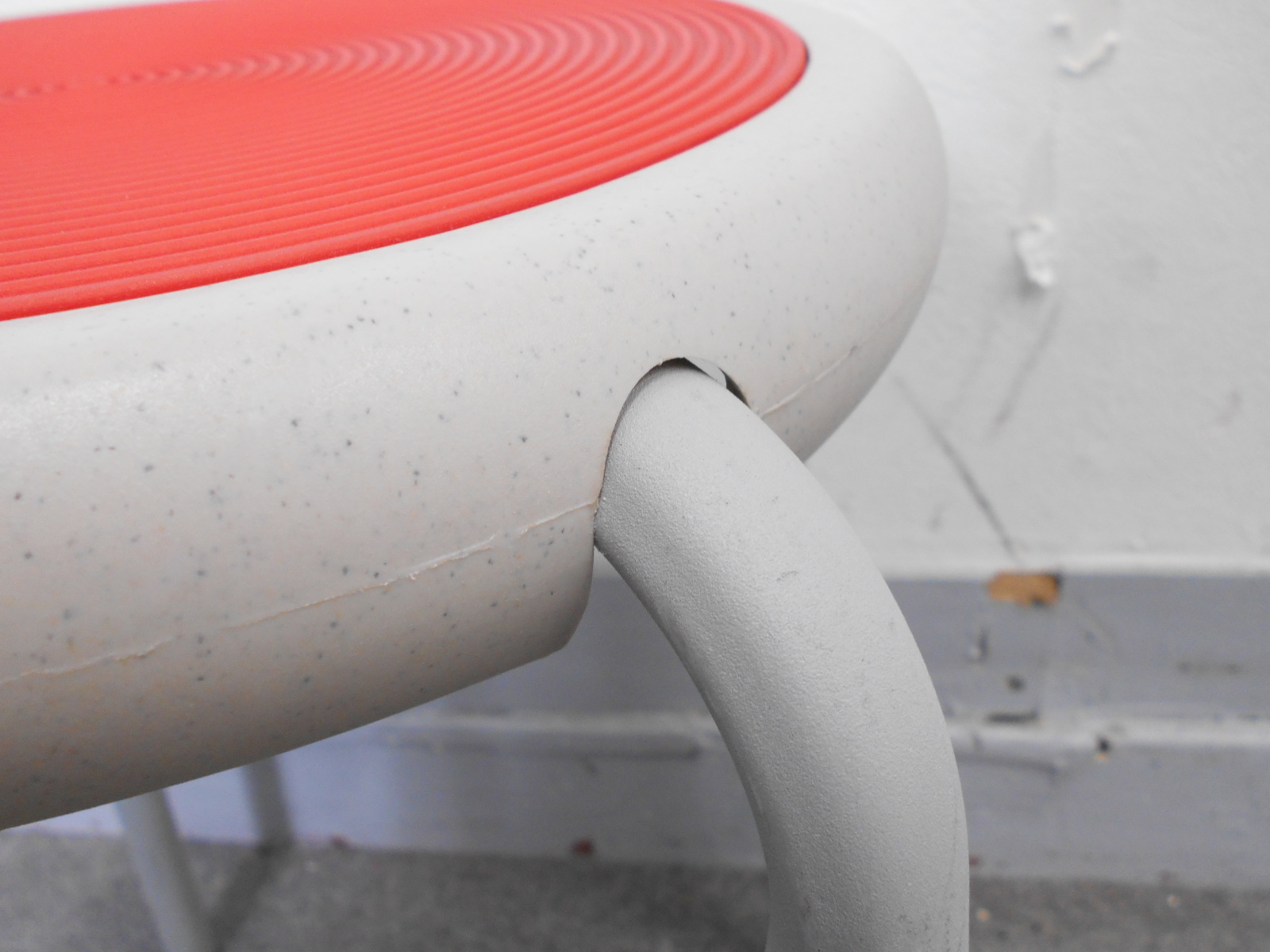 - かなり強い濃い黄ばみ・変色が商品全体にある。(例、座面・背もたれ、脚部等にある。)
