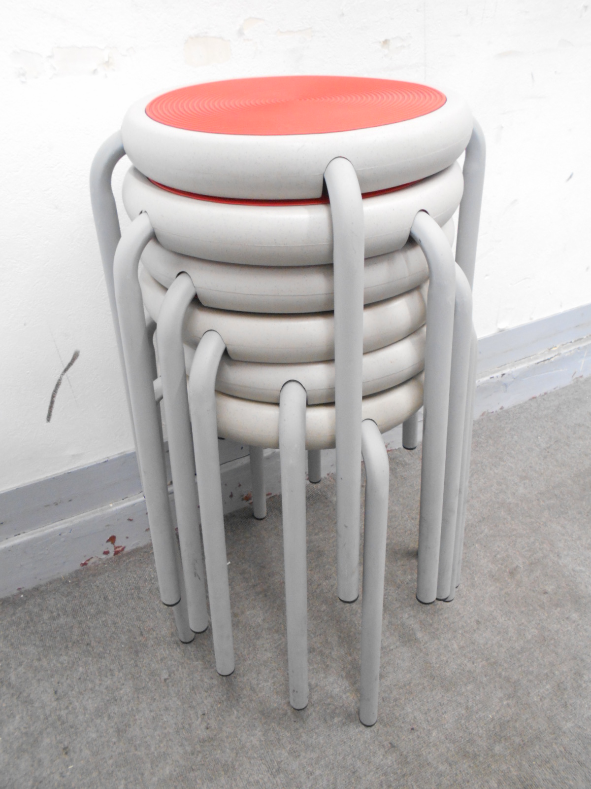 【KS】[お得な六脚セット]丸イス オレンジ- 茨城南店