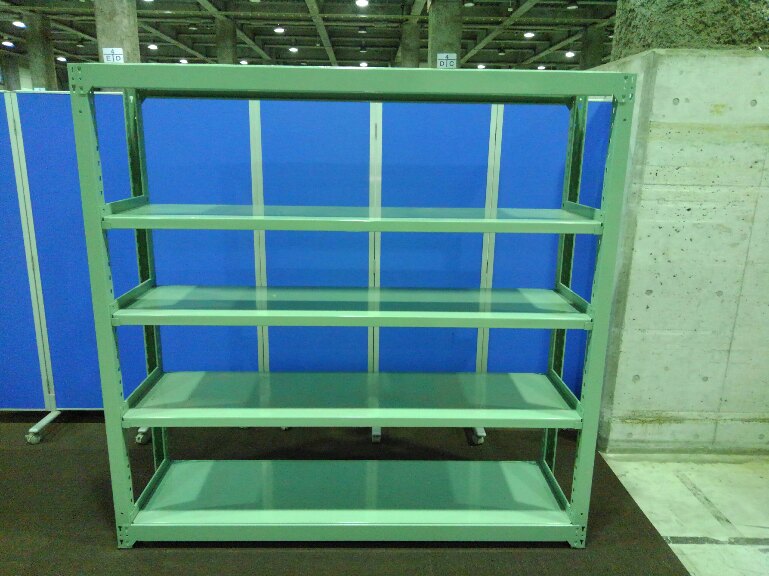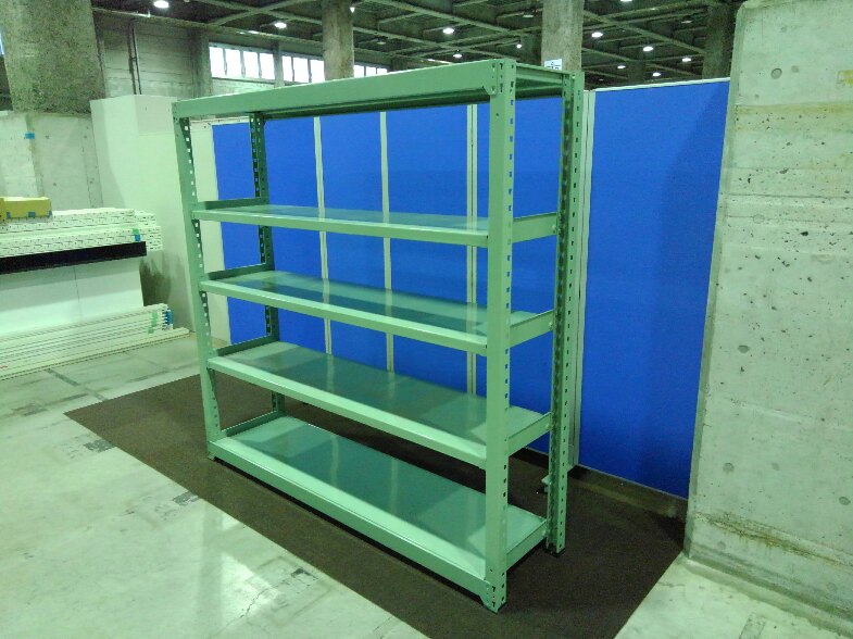 グリーン色の中古ラックが9台入荷しました! 天地5段 耐荷重:段/300kg ボルトレスなので組立も簡単! ※マテハン本舗の中古商品は、千葉県柏市に在庫がございます。- マテハン本舗