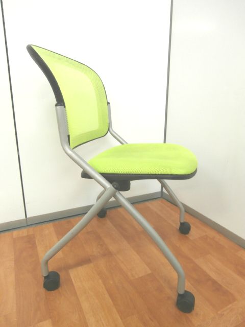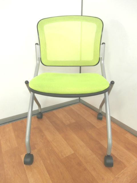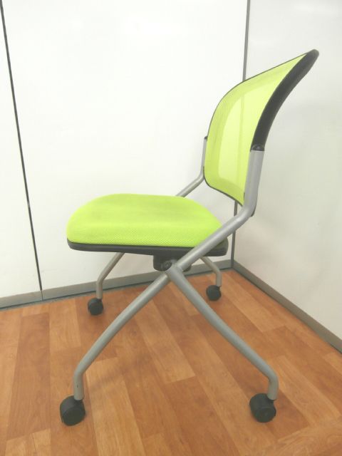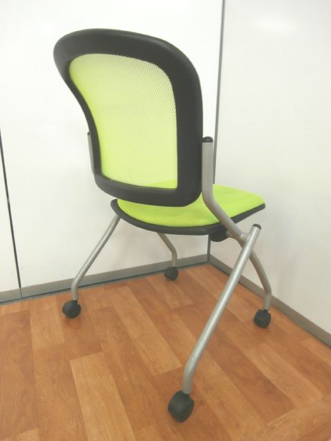 残りわずかの為お安くなりました!!【鮮やかなライトグリーン背もたれメッシュのネスティングチェア】■ネスティングチェア ■ライトグリーンカラー ■メッシュ ■おつとめ品- 仙台店