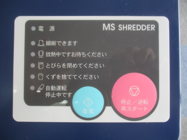 | そのほか機能 | ・細断可能物:紙類、CD/DVD、FD、MO、クリップ(28ミリ以内)、ホッチキス(NO.10以下)、カード類 |