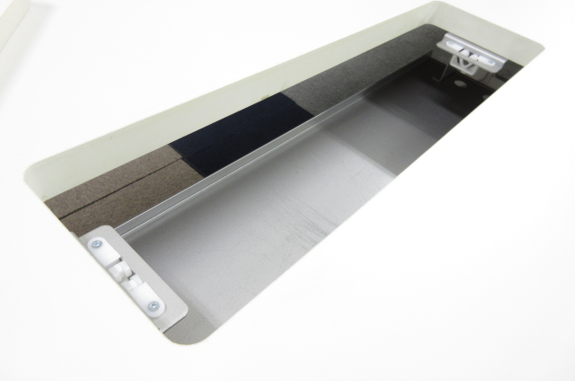 ノートパソコン等のコード類をまとめて天板下に逃がすことが出来ます。