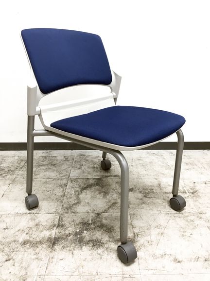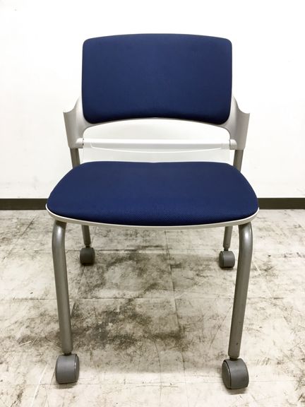 【残り2脚の為、お安く!】【キャスター付きで使いやすい!ミーティングに最適!】■ウチダ(UCHIDA)製 MF-180シリーズ スタッキングチェア ミーティングチェア ■キャスター付き ■レイズンブルー×ホワイトシェル