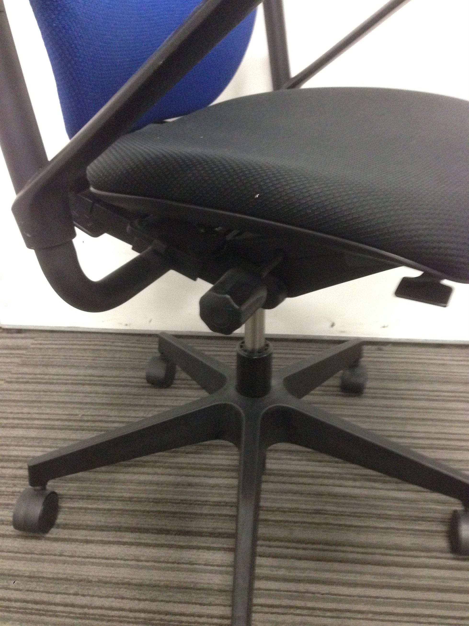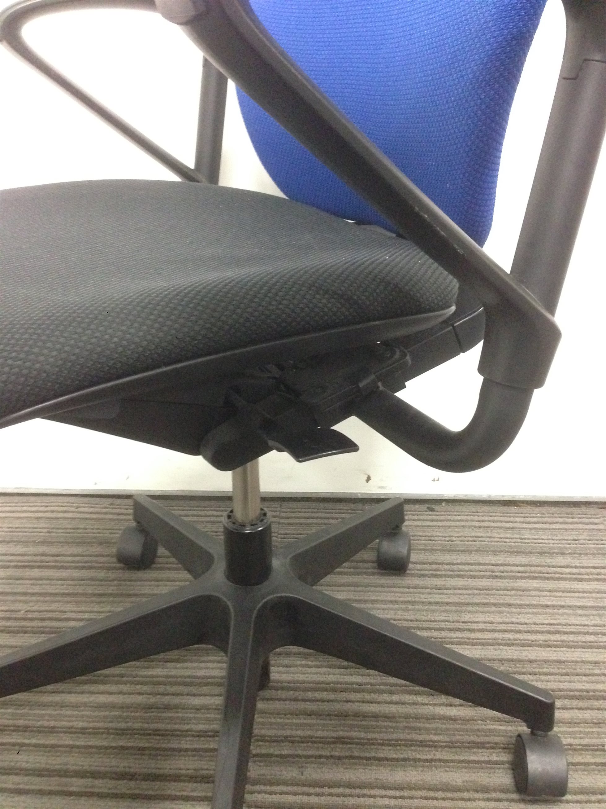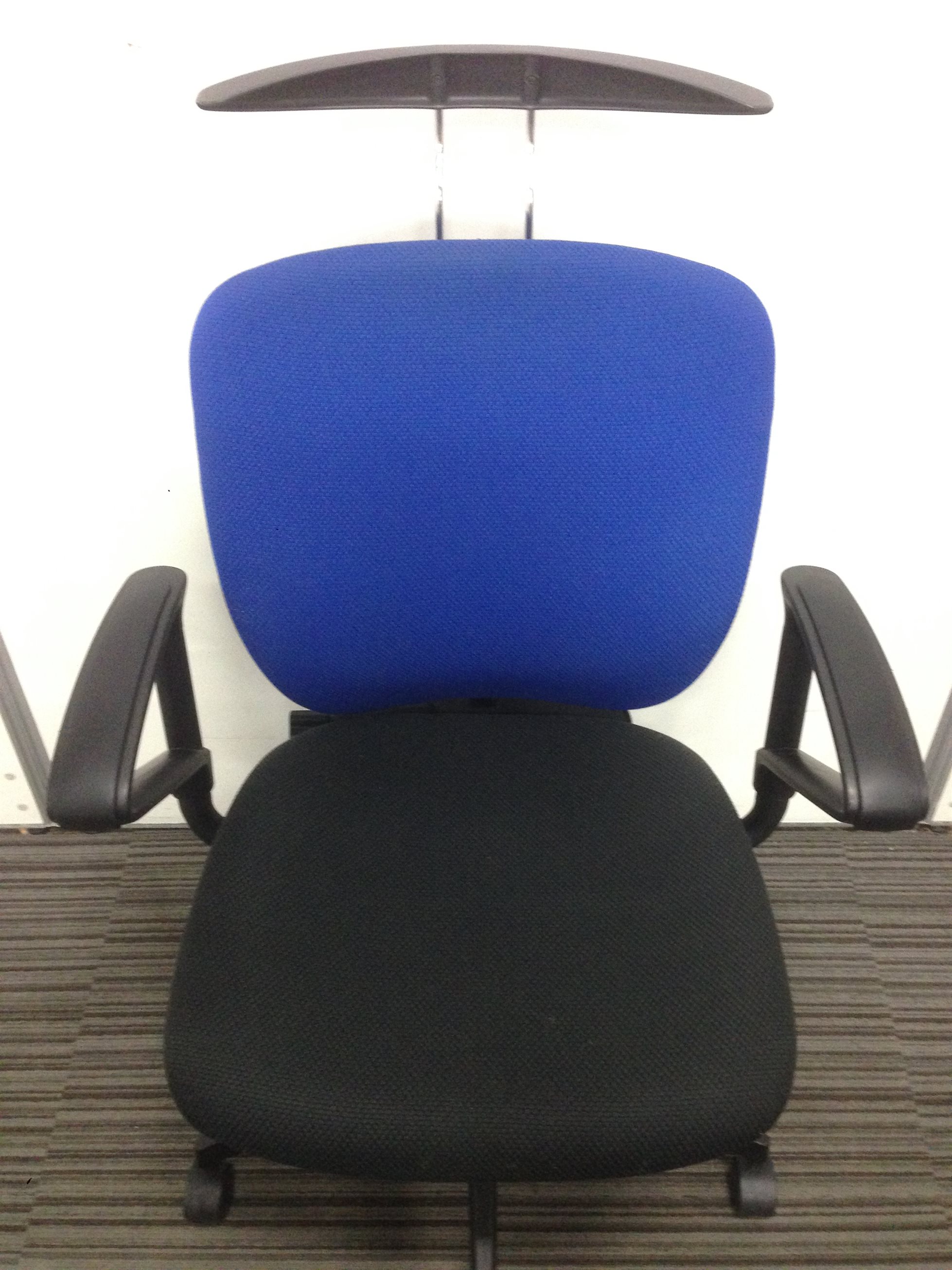 【一人ひとりにマッチする座り心地!姿勢の変化にフレキシブルに対応!】■イトーキ(ITOKI)製 プラオチェア 肘付 ローバック ■サークル肘 ■背面ストロングブルー×座面ブラック オフィスバスターズ 東大阪店【K11】