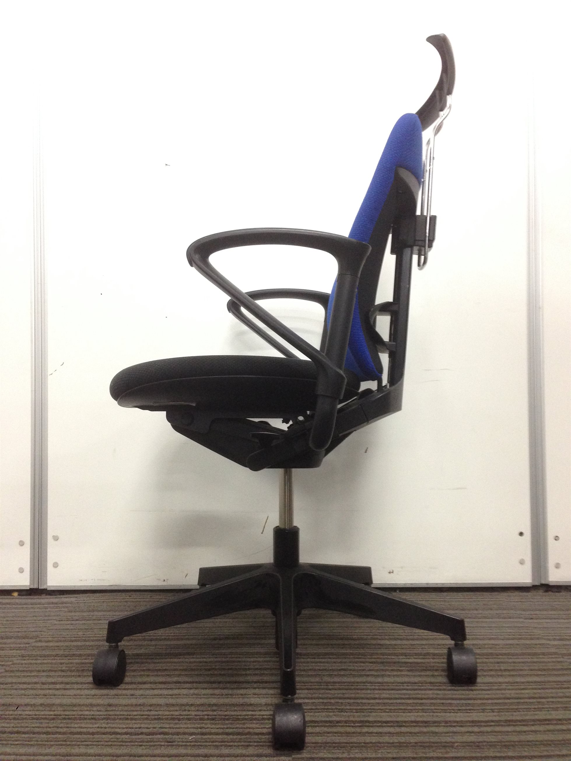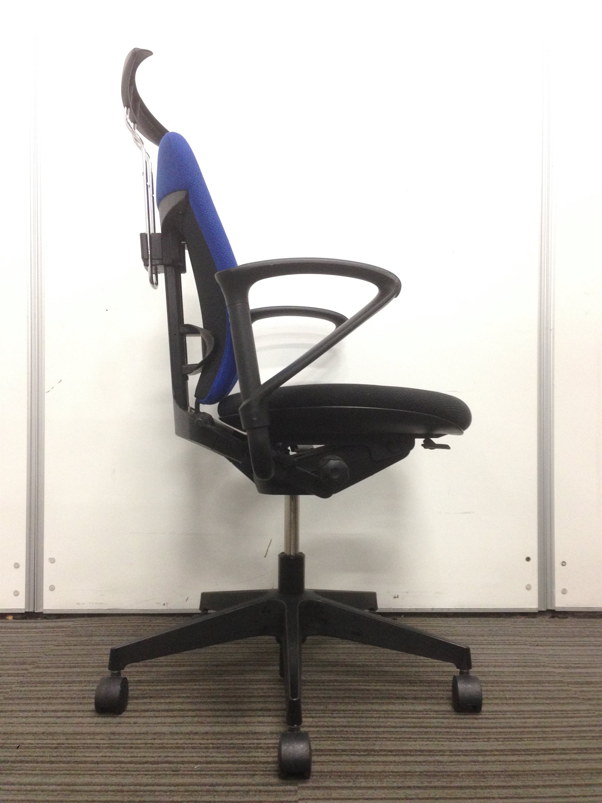 【一人ひとりにマッチする座り心地!ミドルクラスの定番チェア!】■イトーキ(ITOKI)製 プラオ(PRAO)チェア 肘付き ローバック ■固定肘・ランバーサポート付き ■ブルー×ブラックシェル