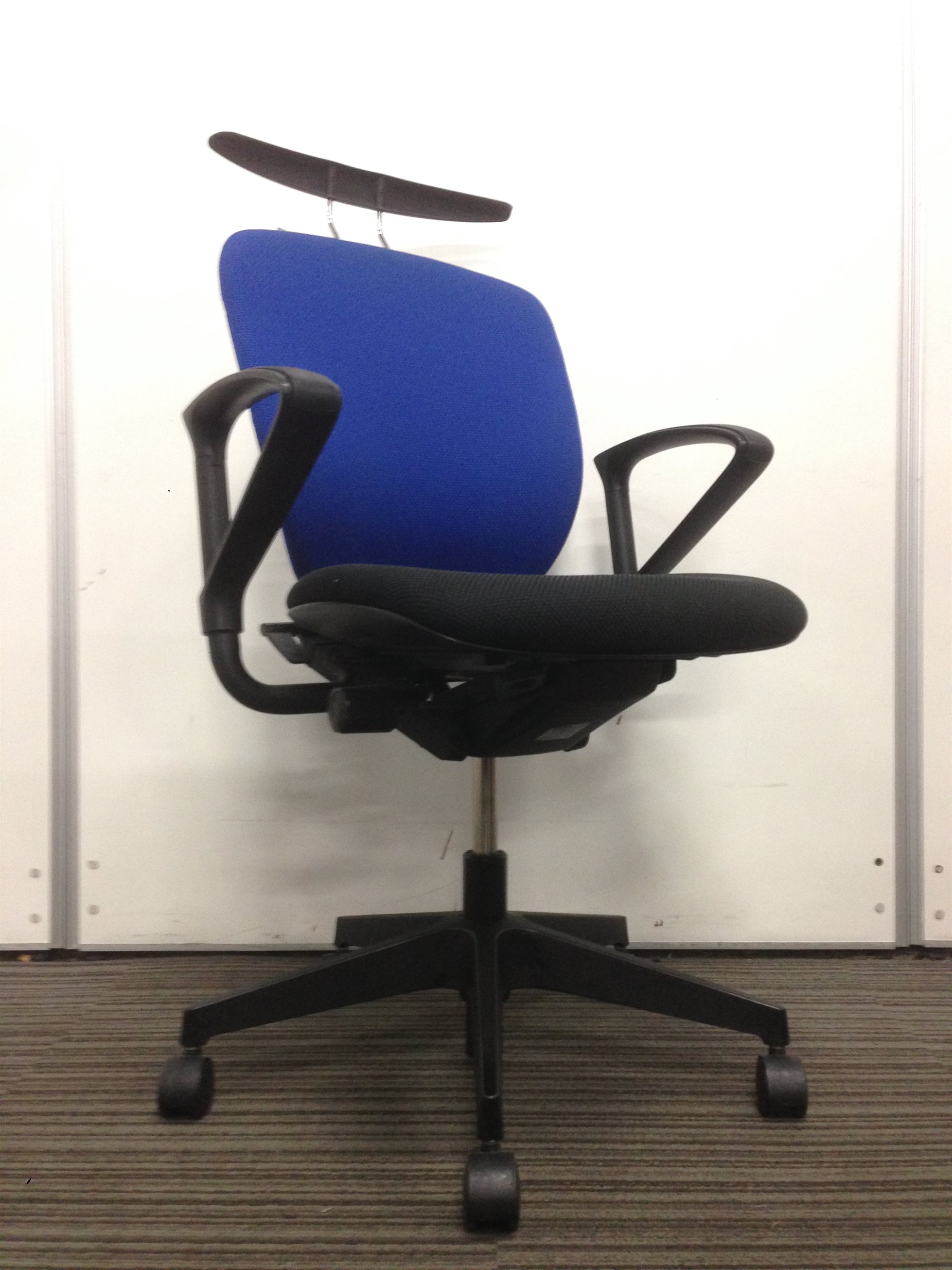【一人ひとりにマッチする座り心地!ミドルクラスの定番チェア!】■イトーキ(ITOKI)製 プラオ(PRAO)チェア 肘付ローバック ■ストロングブルー ×ブラックシェル ■サークル肘 ■ランバーサポート付き ■防炎生地