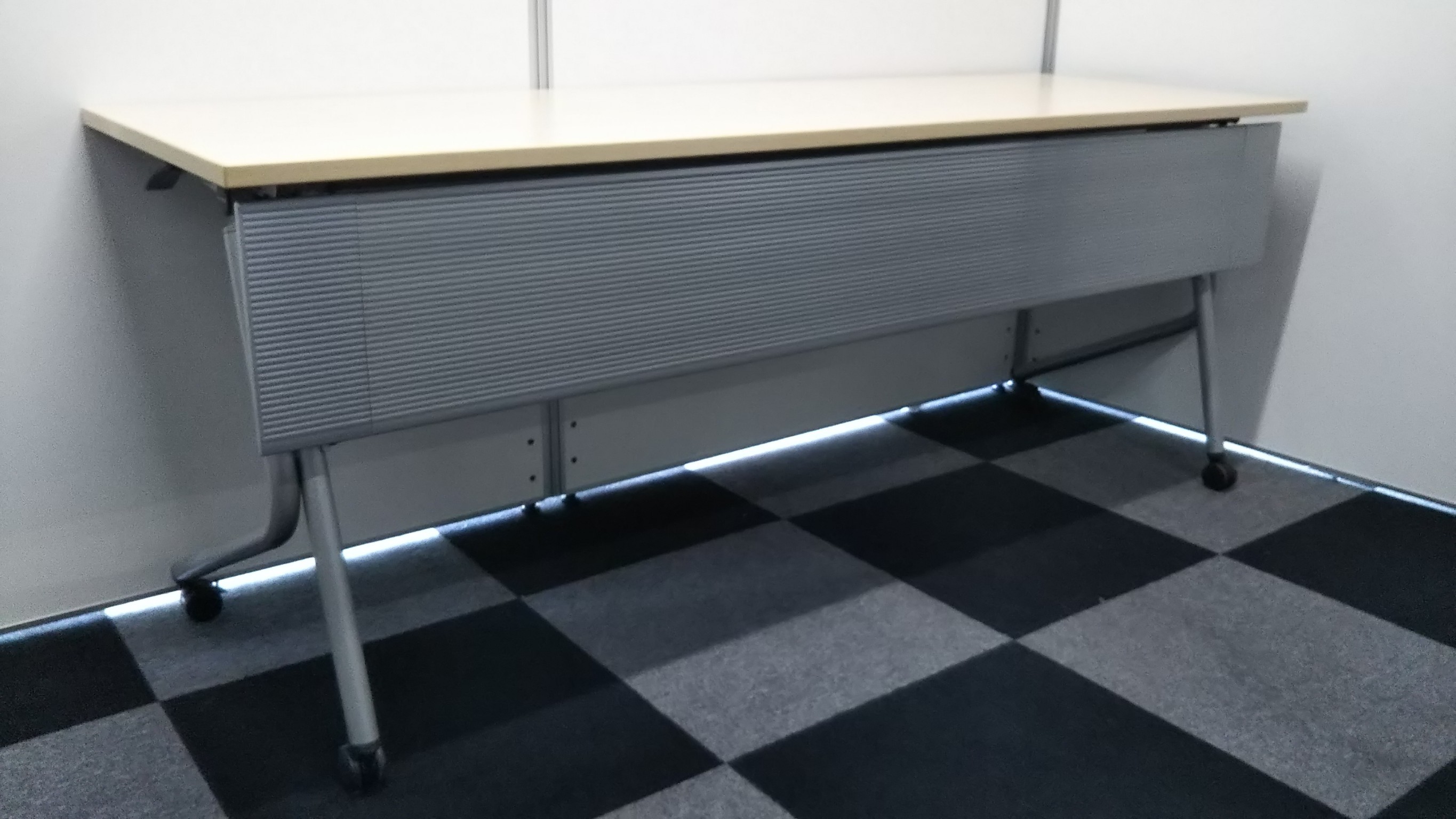 【定価約8万円】【天板ナチュラルカラーの人気サイドスタックテーブル!2~3人使用に最適!】■オカムラ(okamura)製 ネスティア(NESTIA)シリーズ サイドスタックテーブル フラップタイプ W1800×D600㎜ ■幕板付 ■木目ナチュラル