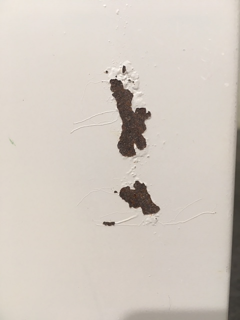 - かなり強い濃い黄ばみ・変色が商品全体にある。(例、天板、正面、背後、サイド部分にある。)