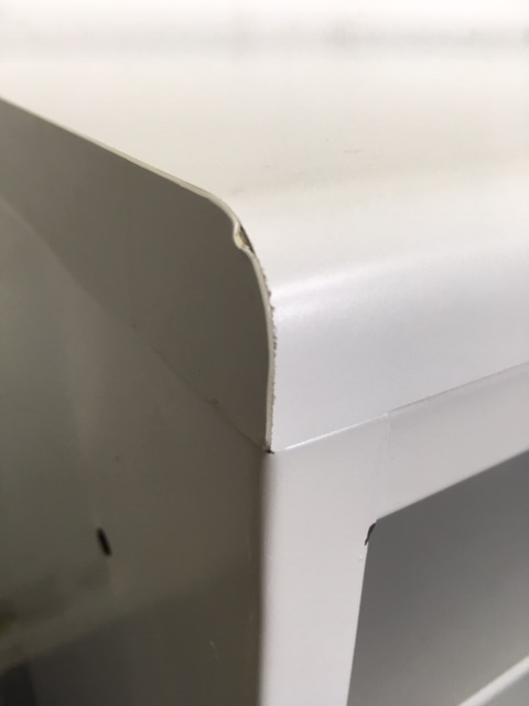 - 一部不具合あり天板歪み、引出開閉不可、アジャスター無し、施錠不可のようにそのカウンターの本来の効用を果たすための機能以外の一部が使用不可な状態。(例、引出が 開閉しづらい等がある。)