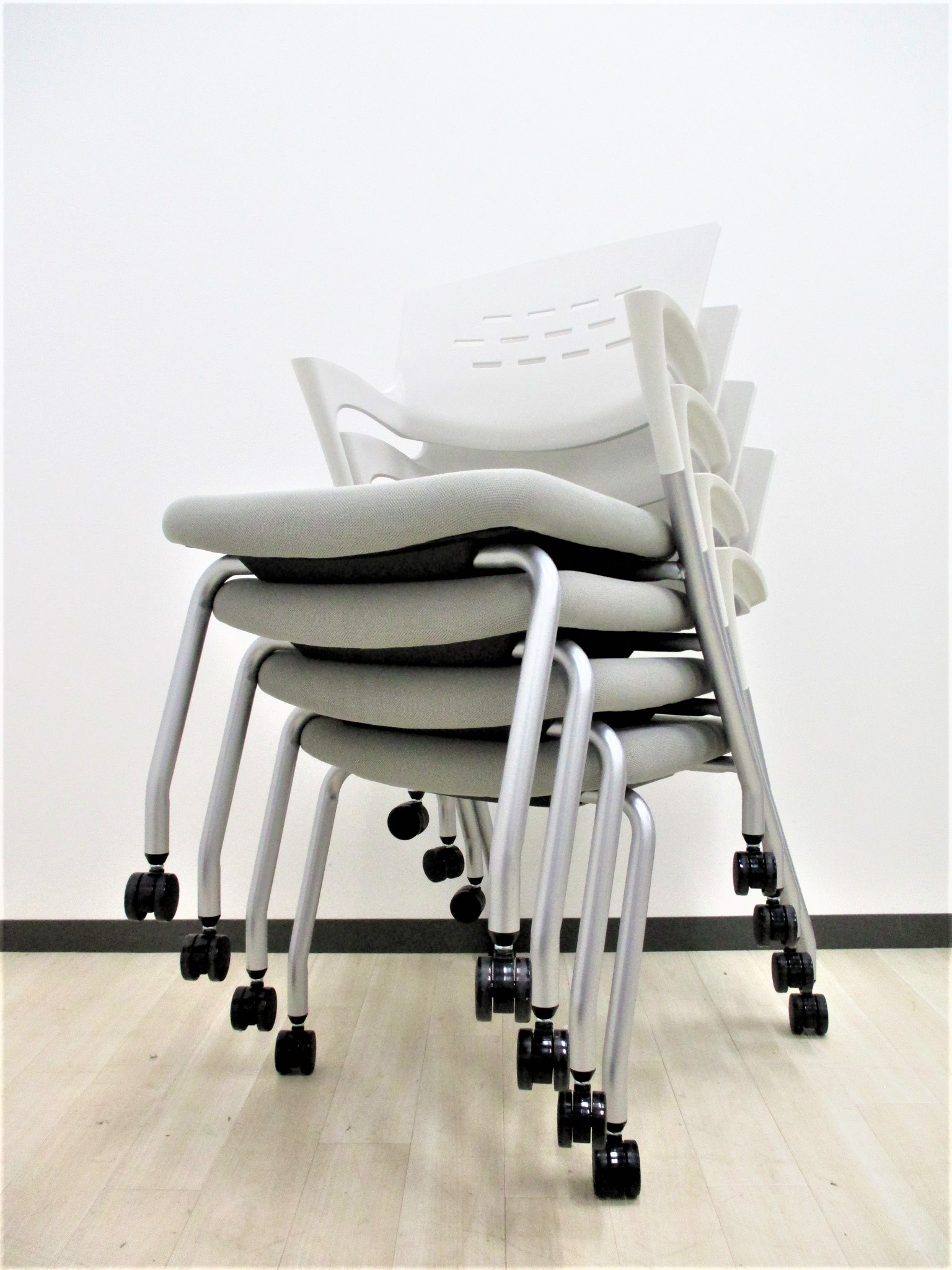 【新古品!】定価4~5万円!キャスター付きスタッキングチェア!清潔感のあるカラー- つくば店