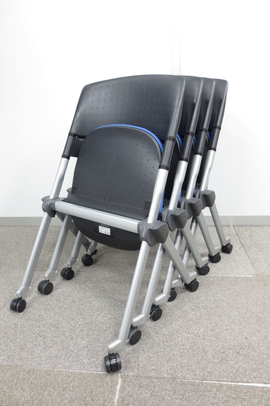 【お手入れ簡単な樹脂背】横に重ねられるネスティングチェア【4脚入荷】- 在庫数