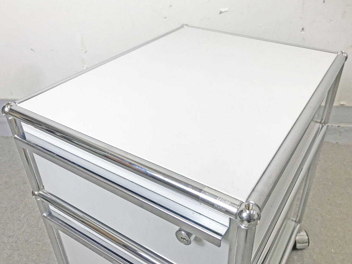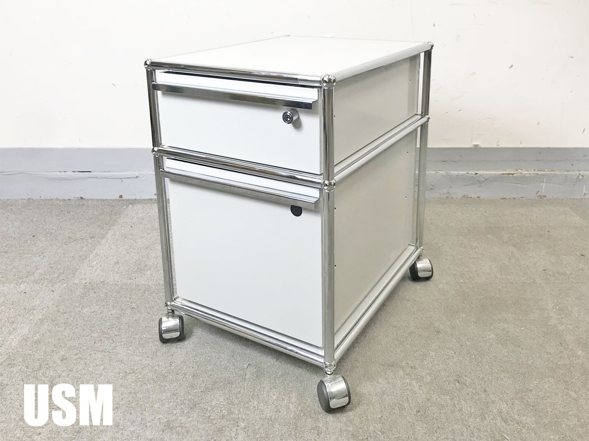 システムキャビネットメーカー『USMハラー』のデスク用ワゴンunit Fです。 デスクワゴンとしてはもちろん、ベッドサイドのナイトテーブルやキッチン周りの収納キャビネットとしてもお使いいただけます。