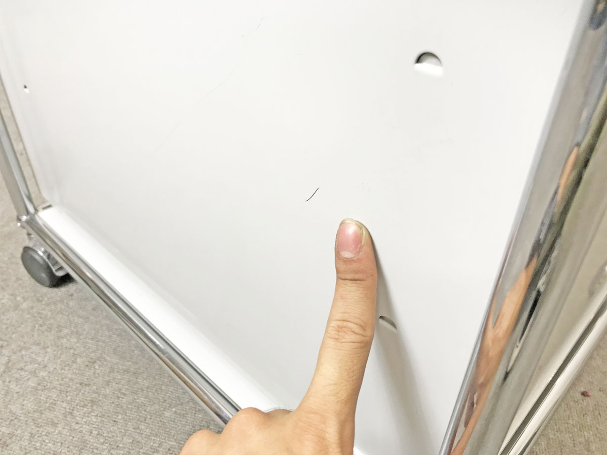 - 目立つ箇所あり傷・凹みが多数、深い傷・凹みが一部ある。(例、天板、正面、背後、サイド部分にある。)