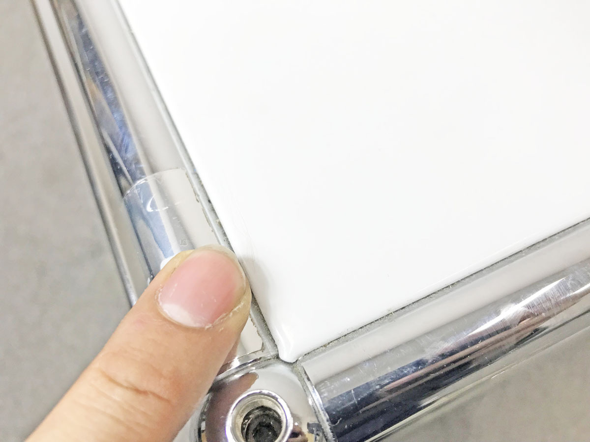 - あり黄ばみ・変色が広い範囲にうっすらある、または濃い黄ばみ・変色が一部ある。(例、天板、正面、背後、サイド部分にある。)