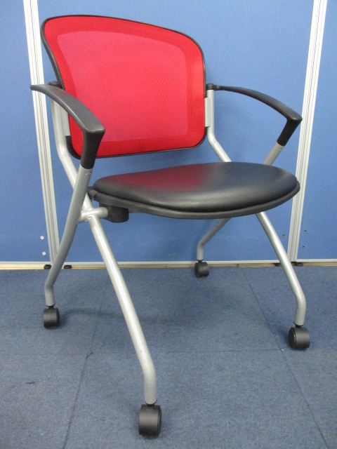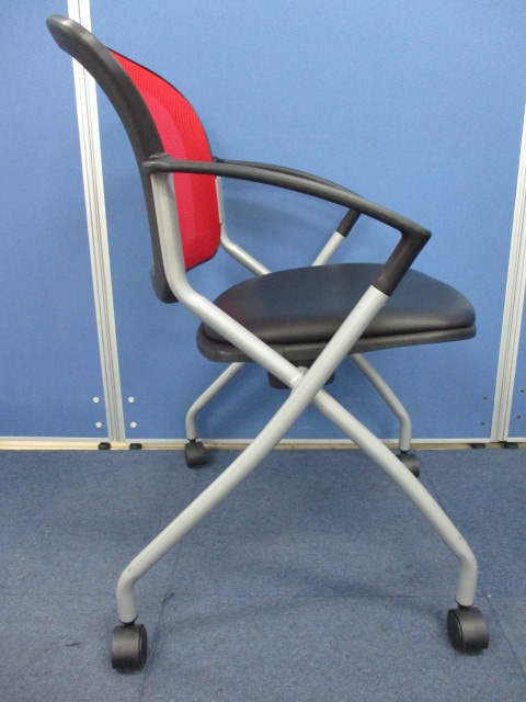 【蒸れにくく、掃除しやすい!!】ネスティング(ミーティング)チェア レッド×ブラックカラー ■会議室や学習塾・研修等におすすめな折りたたみチェア!!軽量でも取扱いやすく人気です!![ネスタブル]- 足立・葛飾店