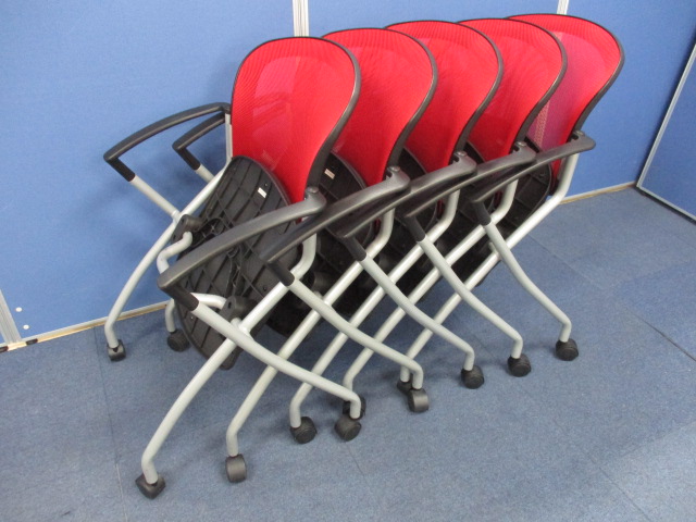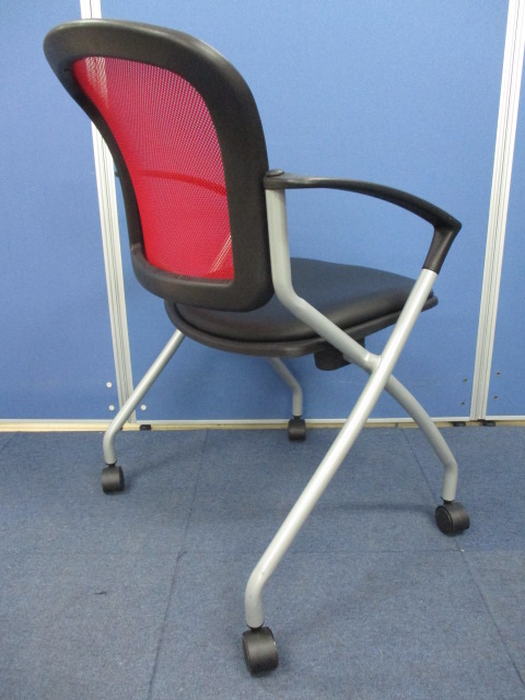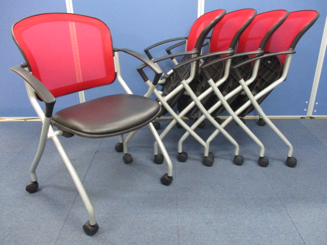 【お得な5脚セット!!】ネスティング(ミーティング)チェア レッド×ブラックカラー ■会議室や学習塾・研修等におすすめな折りたたみチェア!!軽量でも取扱いやすく人気です!!【蒸れにくく、掃除しやすい!!】- 足立・葛飾店