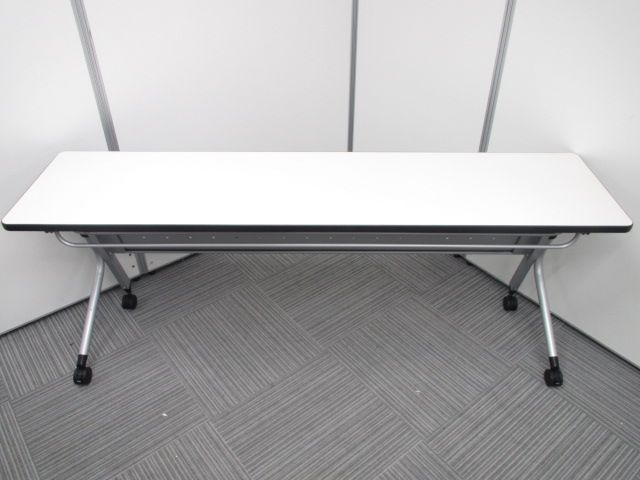 プラス製 Linello(リネロ)」フォールディングテーブル、W1800×D450mm/ホワイト平行スタッキングで、収納時も美しく省スペース収納が可能。- 在庫数