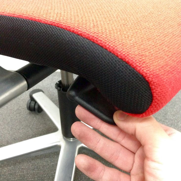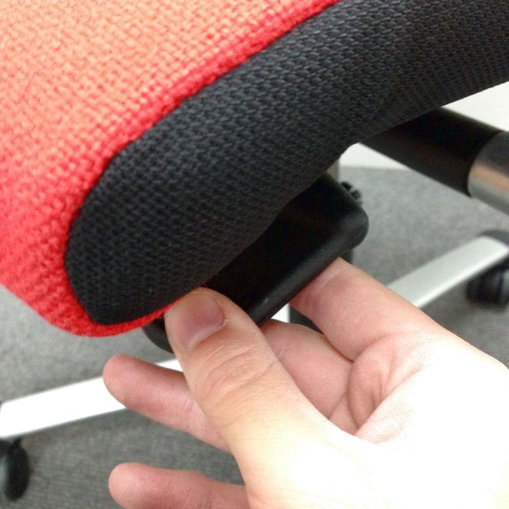 座面右前下のレバーにより、100mmの範囲で座面が上下に昇降し、高さ調節が可能です。