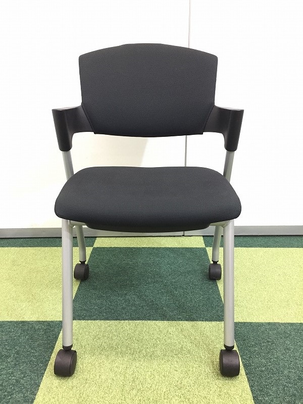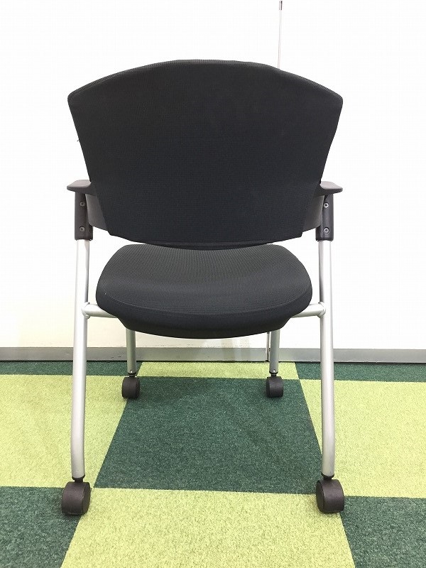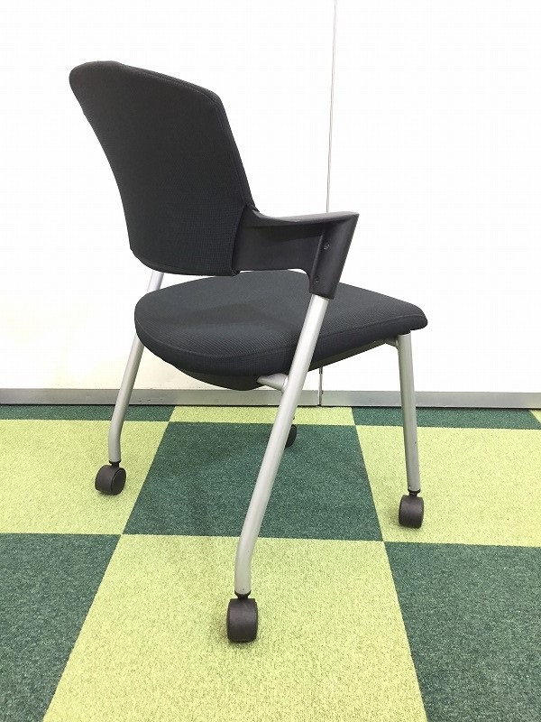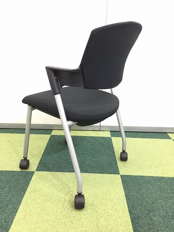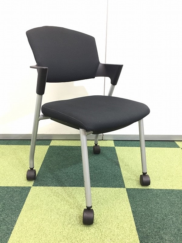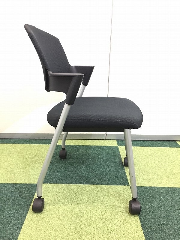 【シンプルスマートなスタッキングチェア!分厚いクッションで長時間でも快適な座り心地!】■スタッキングチェア 肘付ミーティングチェア ■固定肘 ■キャスター付 ■ブラック ■背面樹脂/コクヨ(KOKUYO/プロッティ