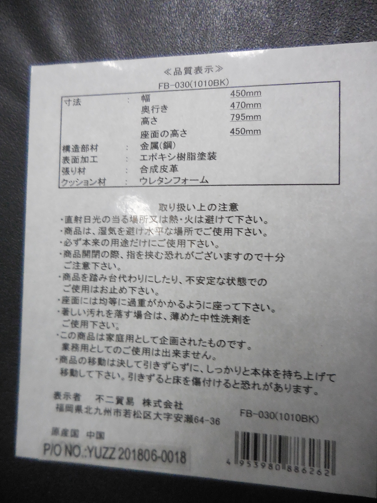 新品/即日持ち帰り可能 急遽必要な時でも大丈夫! ◆不二貿易◆FB-030 ※本体:合成皮革・ウレタンフォーム・スチール/耐荷重80kg/重量約3.58kg- 横浜本店
