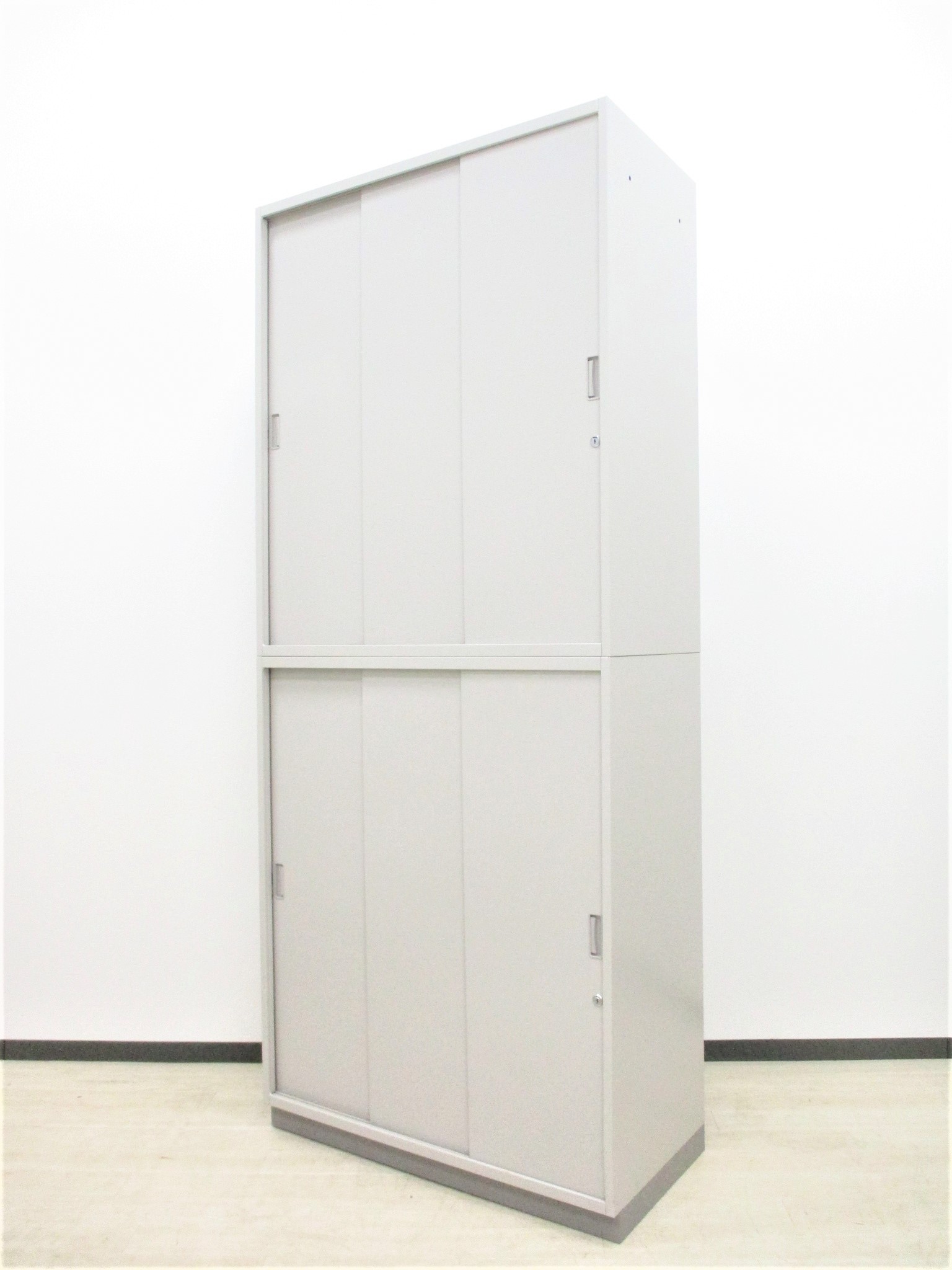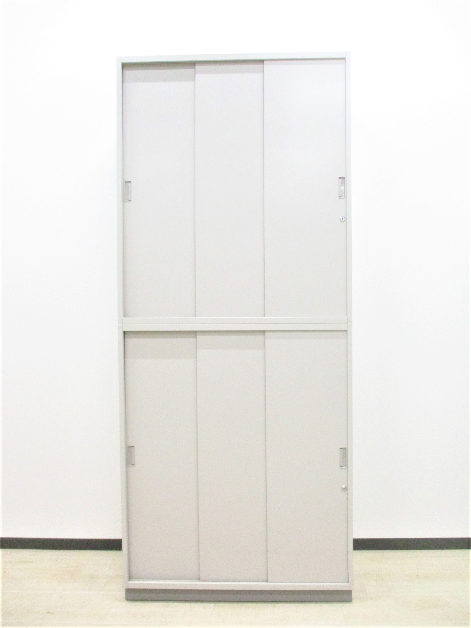 【在庫入替セール】【1台限定】【省スペース化に嬉しい味方!】■イトーキ(ITOKI)製 シンラインシリーズ 書庫セット(3枚引き違い+3段ラテラル) ■シリンダー錠 ■ニューグレー【エレベーター搬入も安心!】【T10】
