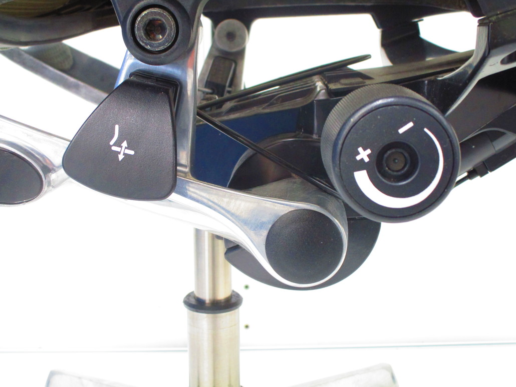 - 座面の右下にあるレバーの操作により座面位置を上下に100mm分調整することが可能です。