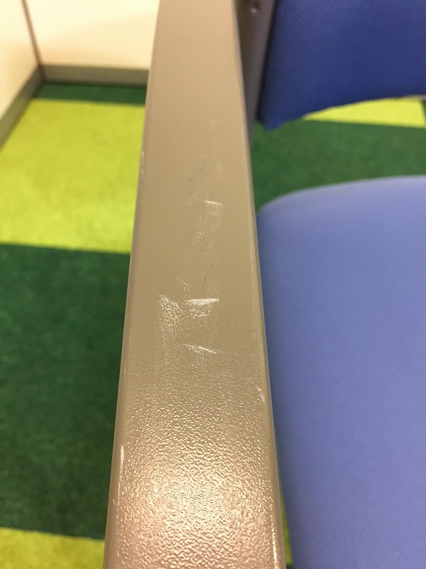 - あり黄ばみ・変色が広い範囲にうっすらある、または濃い黄ばみ・変色が一部ある。(例、座面・背もたれ、脚部等にある。)
