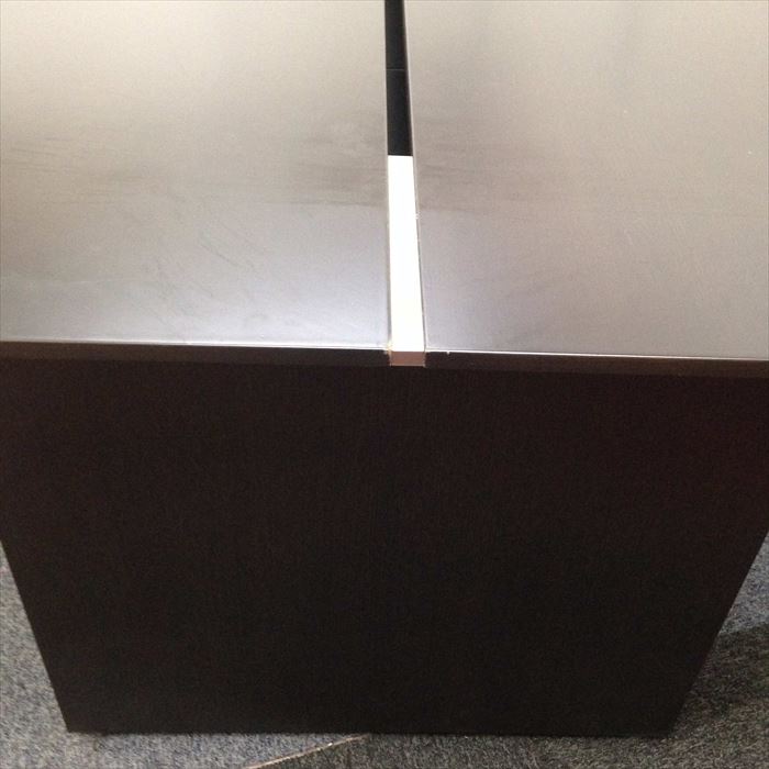 - 一部不具合あり天板歪み、アジャスター無し、キャスター使用不可ようなそのテーブルの本来の効用を果たすための機能以外の一部が使用不可な状態。(例、キャスターロッ ク機能使用不可、棚板無し等がある。)