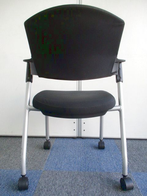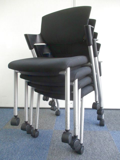 【シンプルスマートなスタッキングチェア!分厚いクッションで長時間でも快適な座り心地!】■スタッキングチェア 肘付ミーティングチェア ■固定肘 ■キャスター付 ■ブラック ■背面樹脂/コクヨ(KOKUYO/プロッティ