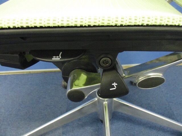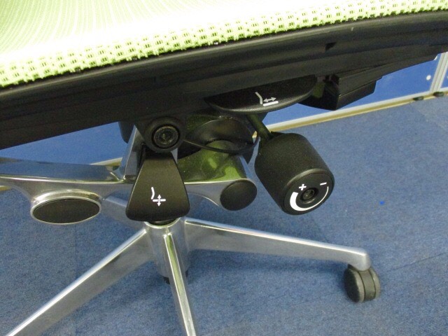 座面のすぐ右下にあるレバーの操作にて、座面位置の上下調整(100mm)が可能です。