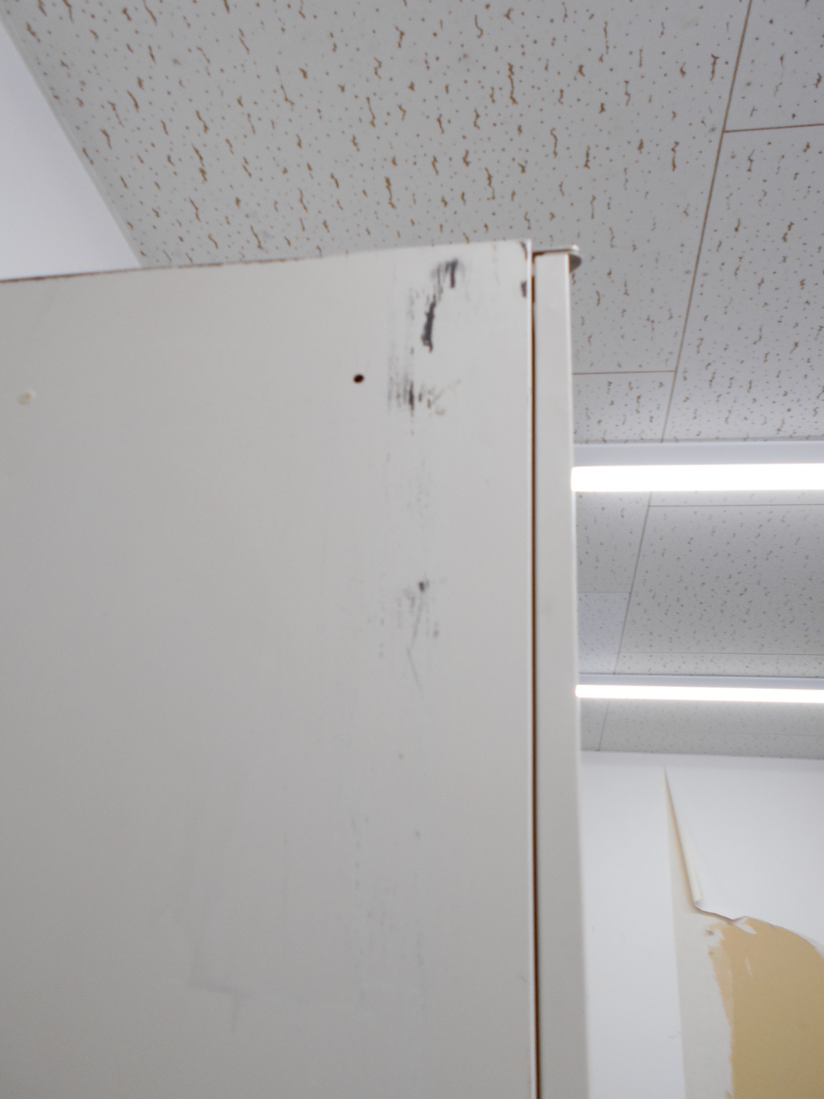 - 壊れている引出の開閉不可、施錠不可、棚板無しといったその書庫の本来の効用を果たすための機能に不具合がある(例、扉、引出の開閉が行えない。)