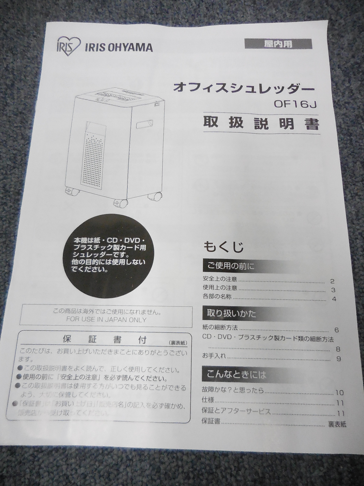 アイリスオーヤマ製のパーソナルシュレッダー、OF16が3台入荷致しました!