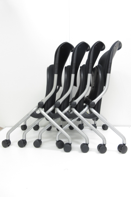 【4脚入荷!!】会議やセミナー等にオススメ!!使い勝手の良い折りたたみチェア!!【キャスター付!!】- 在庫数