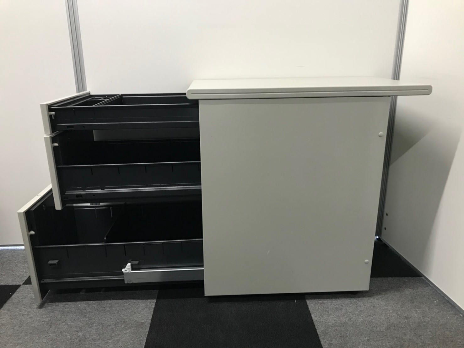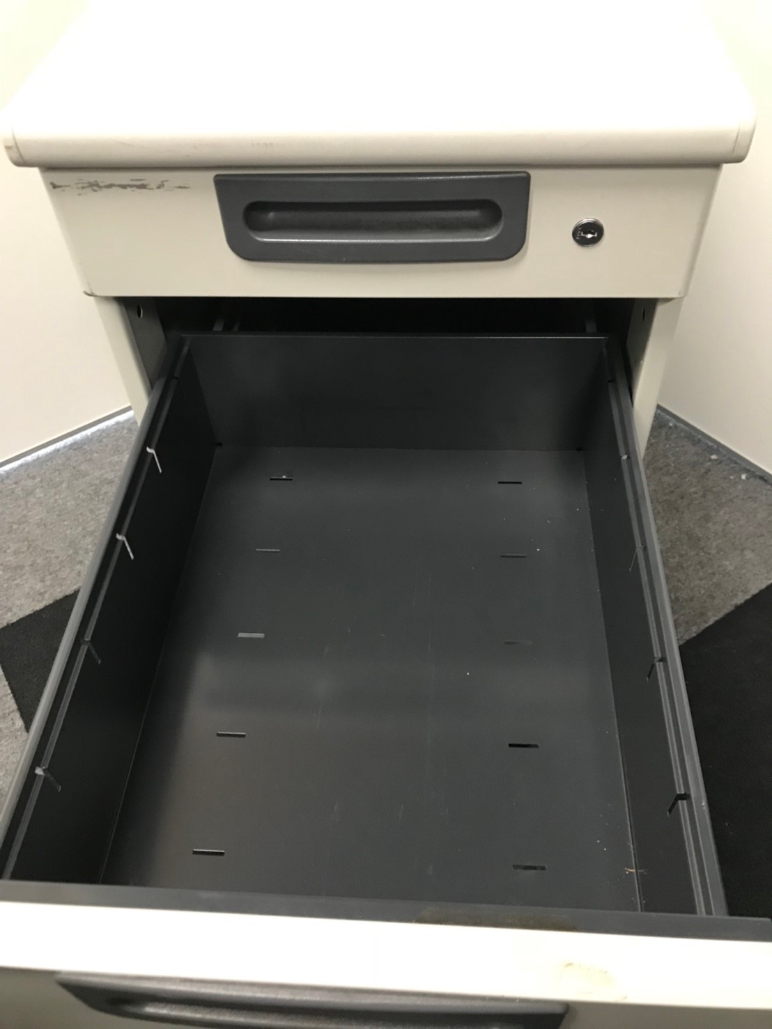 - 一部不具合ありその脇机・ワゴンの本来の効用を果たすための機能以外の一部が使用不可な状態。(例、引出が開閉しづらい、 キャスターロック機能使用不可、ラッチ不良 等がある。)